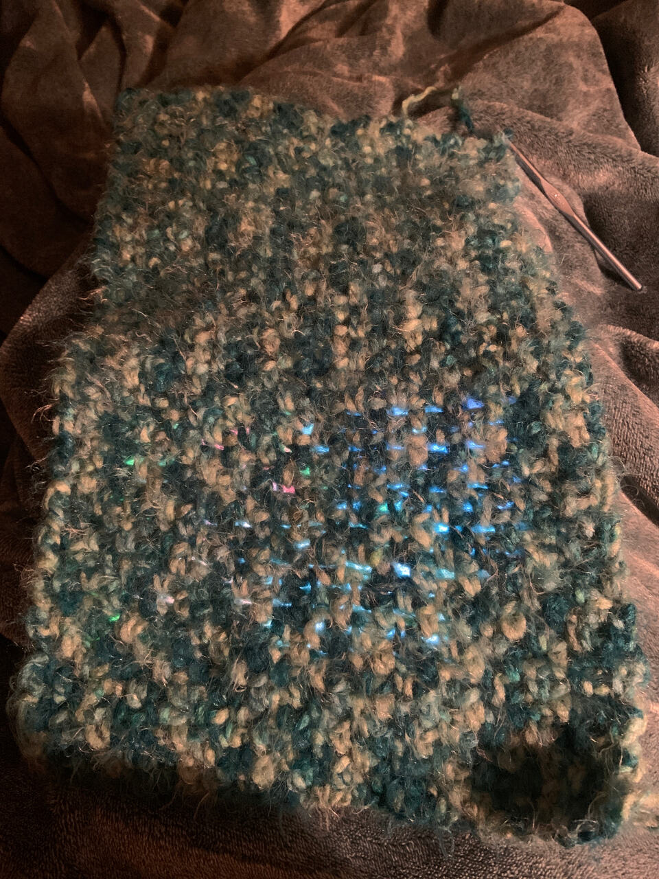My favorite type of pattern to make is moss stitch scarves with multi color yarn