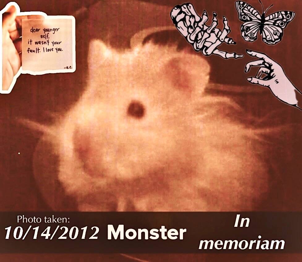 This is Monster; I rescued him from a not so kind employee who had been about to take him out of his home for a kinder ending than he’d ever have had if he’d not come home with me. I don’t support impulse buying pets please do not buy any pets or adopt them without doing proper research to make sure they are a good fit for you and they are cared for as they should be. This was a memory photo I