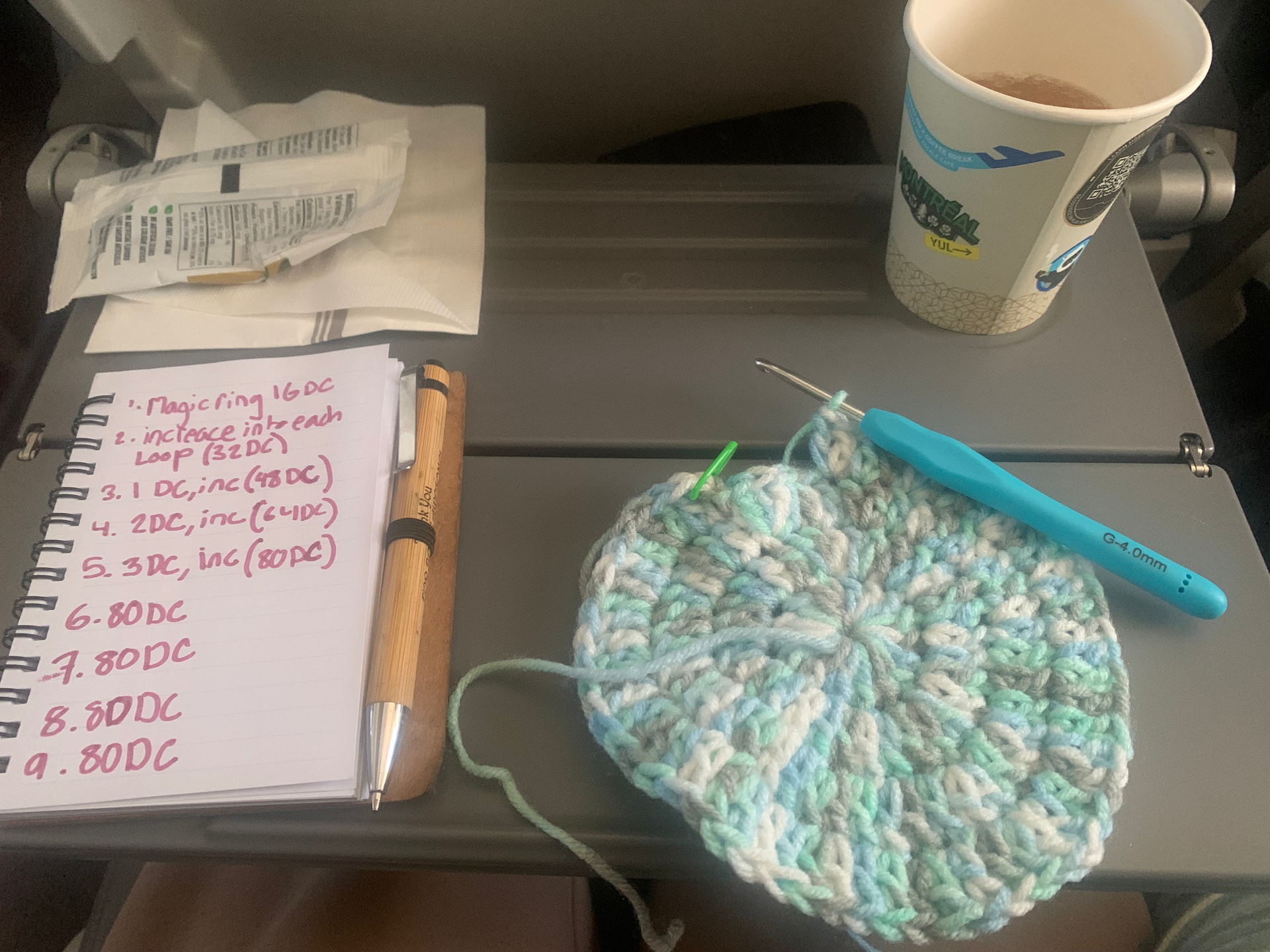 Crocheting in an airplane is the best