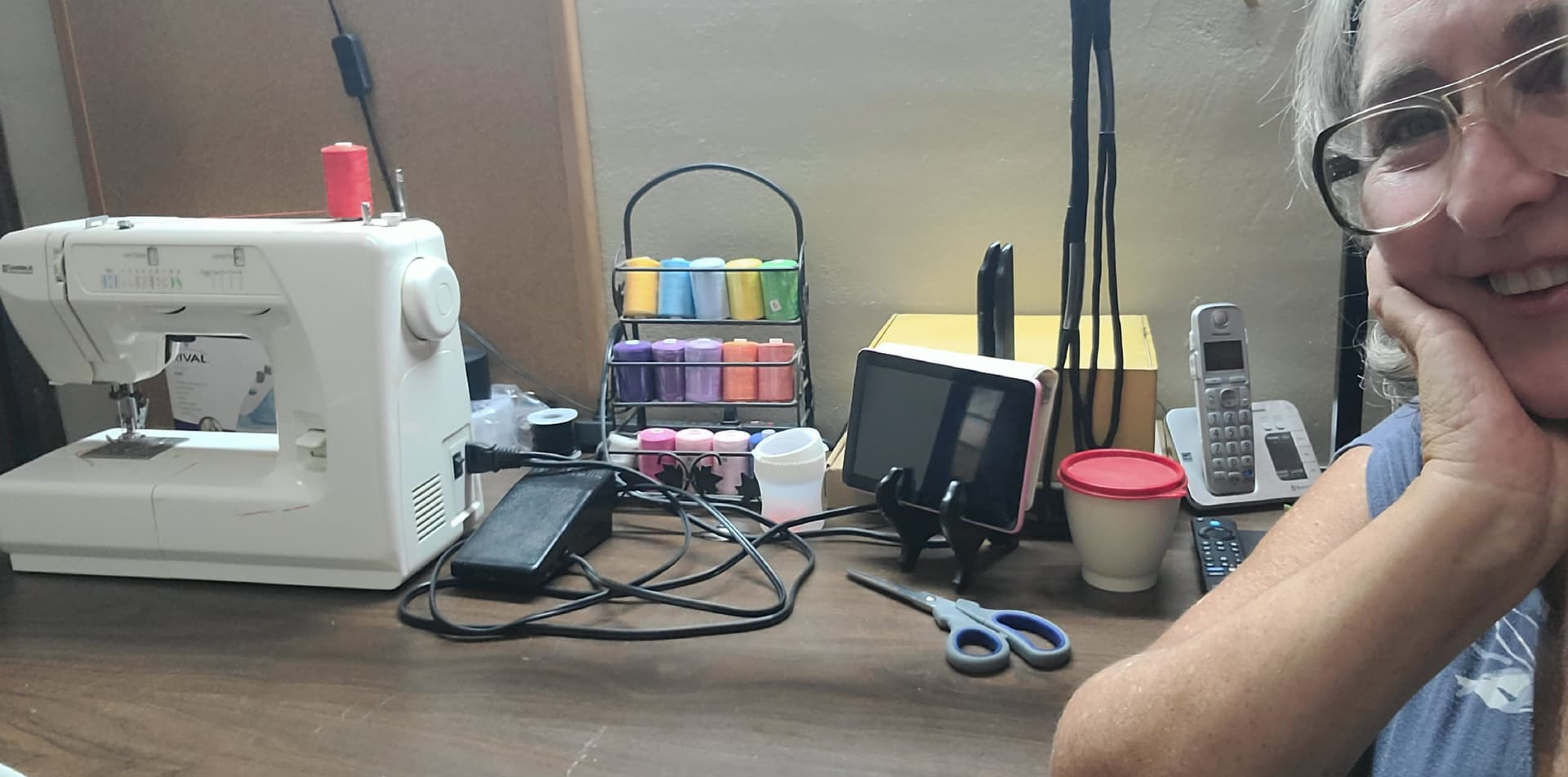 I have so many sewing projects I need to get to. And I finally got a spot ready today. I actually sewed a little bag shut that holds a sand bag for my leg weights. So there’s something already.