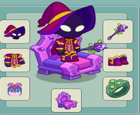 My mount is the flower bush one from springfest a lot of years ago, my wand is the magic flute, my hat is the holiday deluxe bow, my robe is the cake chef outfit thing, and my boots are also the cake chef outfit. I collect buddies so I have sooooo many, the kitten trio, snake, and slippery penguin are my fave! But I love all of them :)