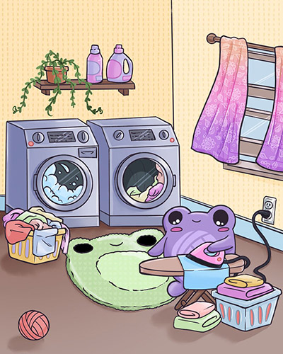 April is here, and I have been busy fluffing, folding, and making everything extra cozy. The washers are spinning, the sunshine is peeking through the window, and my froggy little laundry room is full of soft, clean vibes.