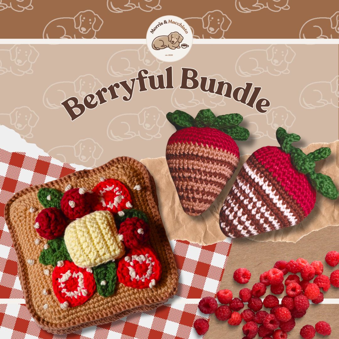 Hi, we’re Morris & Macchiato, a tiny pretend café run by a dachshund! Our whole menu is stitched instead of baked.