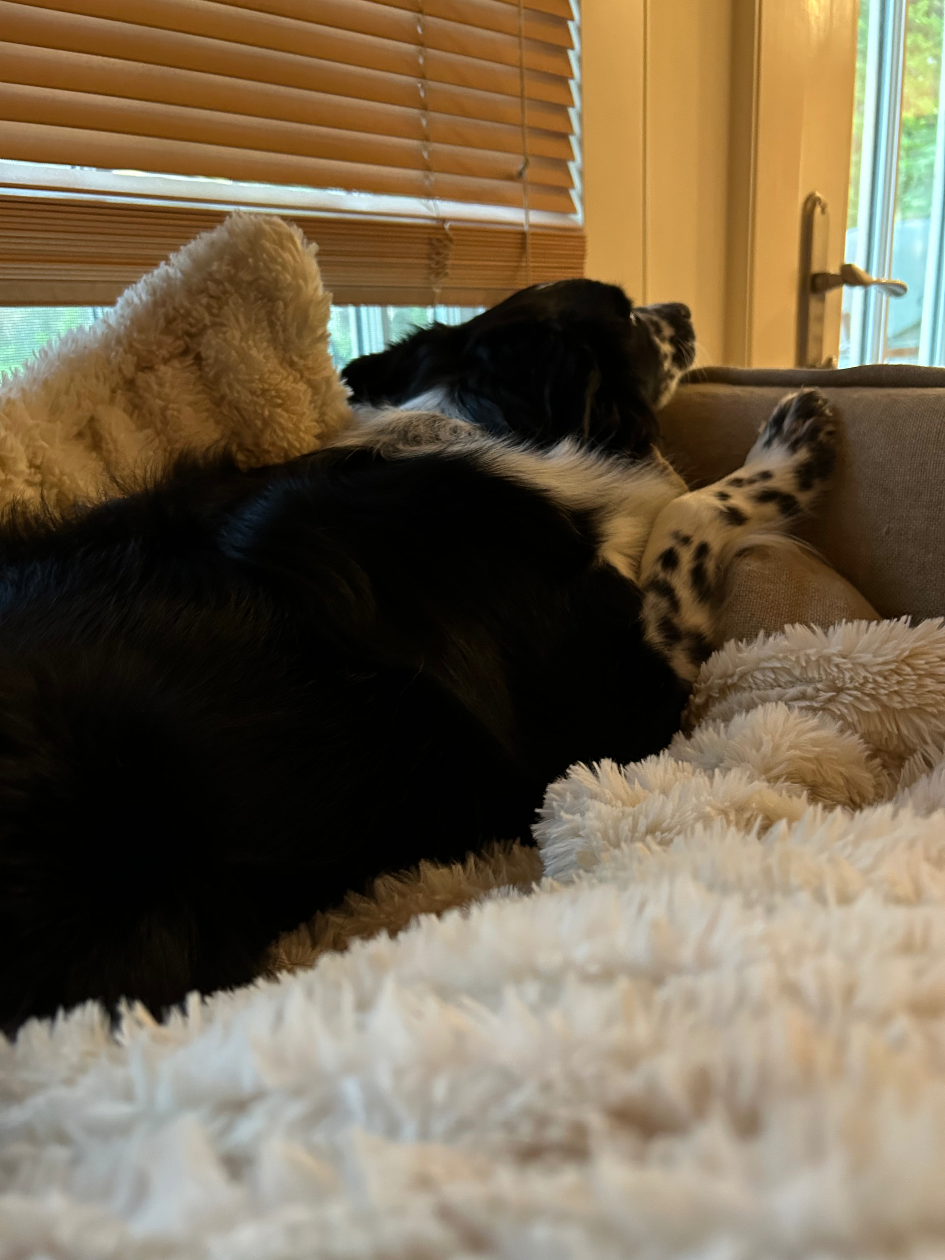 My dogs favorite spot is probably laying on the couch with her head out the window to watch squirrels and rabbits and birds —>
