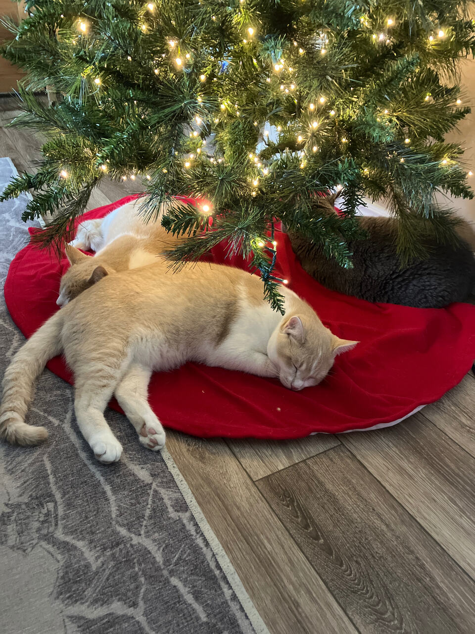 For the people who own a cats, you know that your cat has its favorite spot in the house. Well at Christmas time my cats just love to sleep under the Christmas tree.