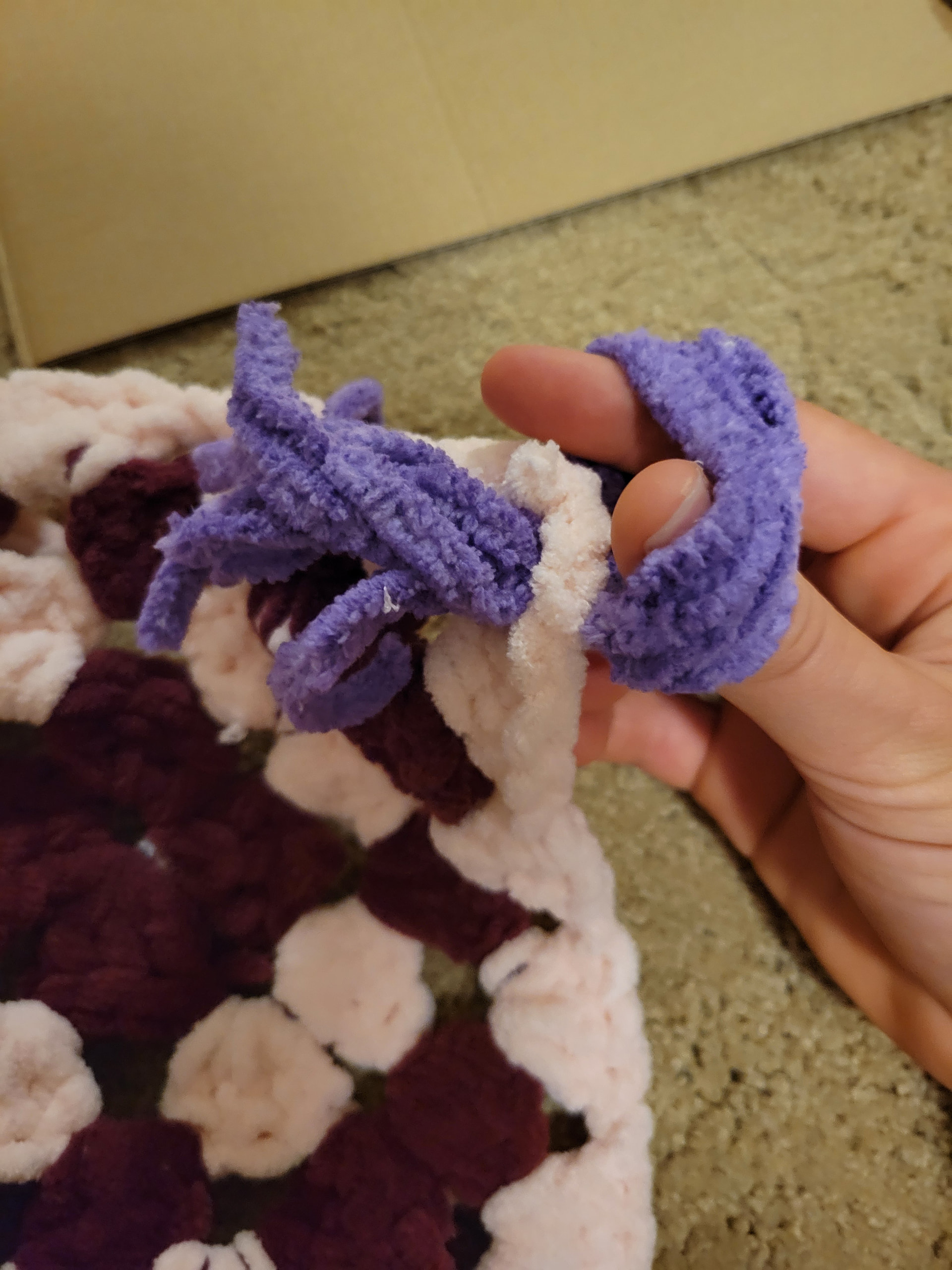 I don’t have a pattern written for these yet sadly… They are basically 1-row basic granny squares with fringes and a keyring attached to one side. They take about 5-10 minutes to make
