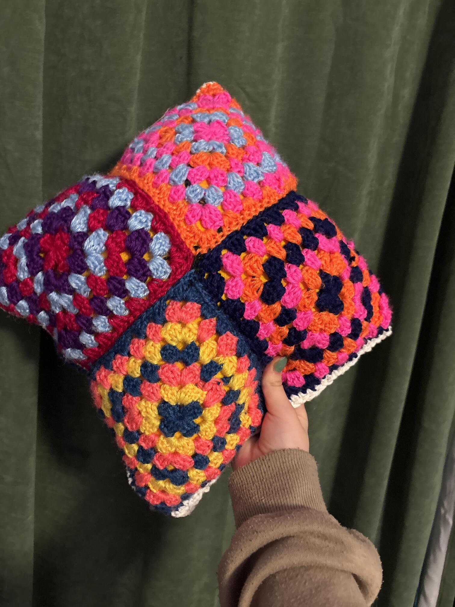 I have been working for 3 days on this free handed granny square pillow ![]()