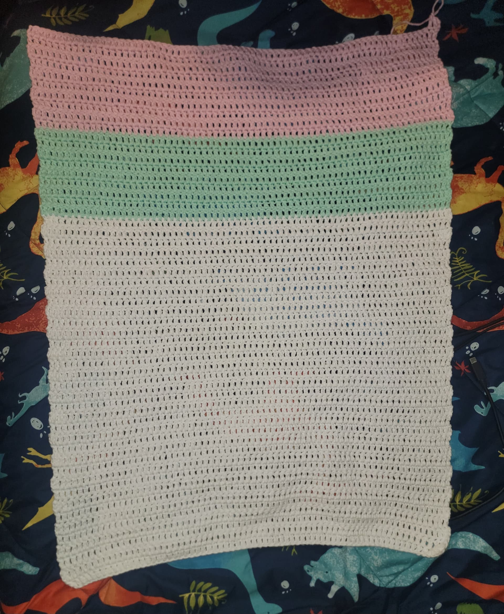 hi everyone! i know it’s earlier than normal, but i ran out of pink :( so here’s day 3! i plan on picking up more yarn tomorrow so i should have an update for yall tomorrow too. this has sorta been a stash buster project for me too since I’ve had both the white and pink sitting around for a few months. anyways, here’s the tutorial and here’s day 3’s update