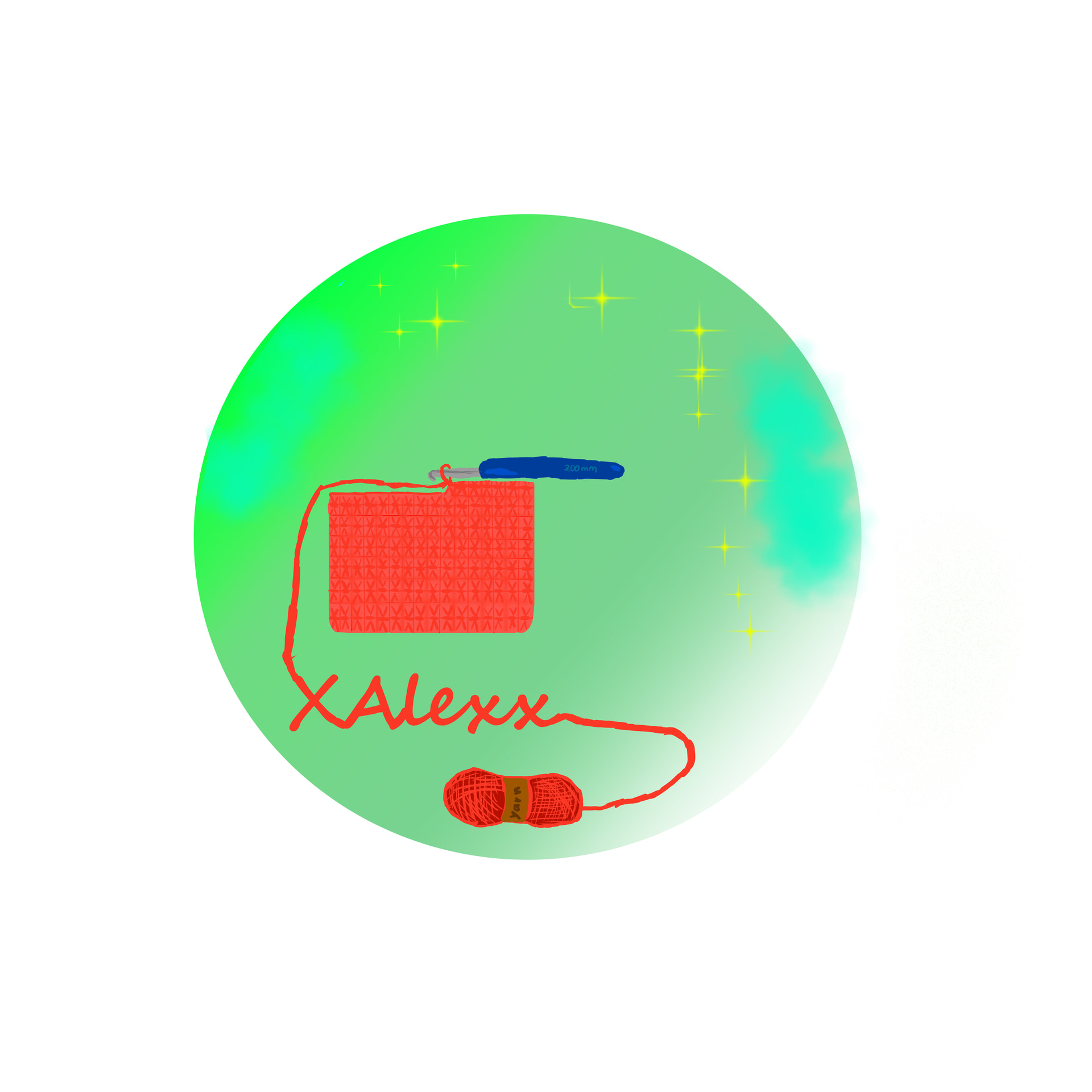 I used Paint3D for the background and canva for the yarn and hook