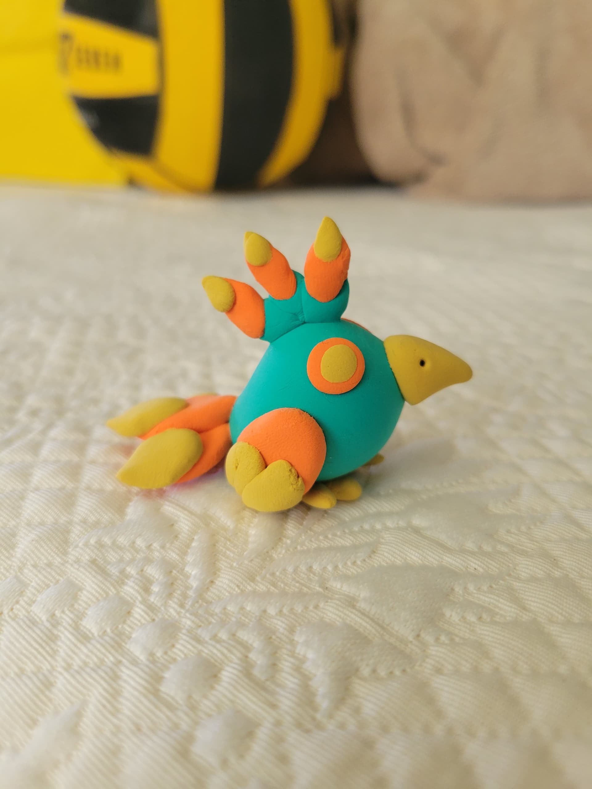 So I went to church today and decided to bring my clay (my grandma said crochet was too distracting) I made this little guy named “Flametalon” and now I have the inspiration to make an entire army of them. Here is a Pic of Flametalon: