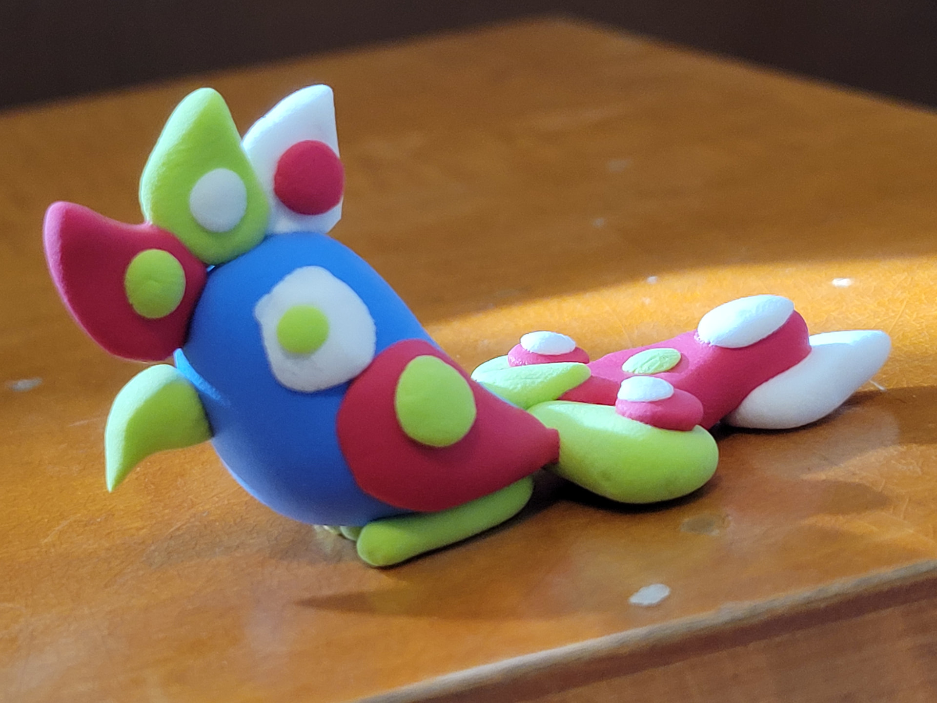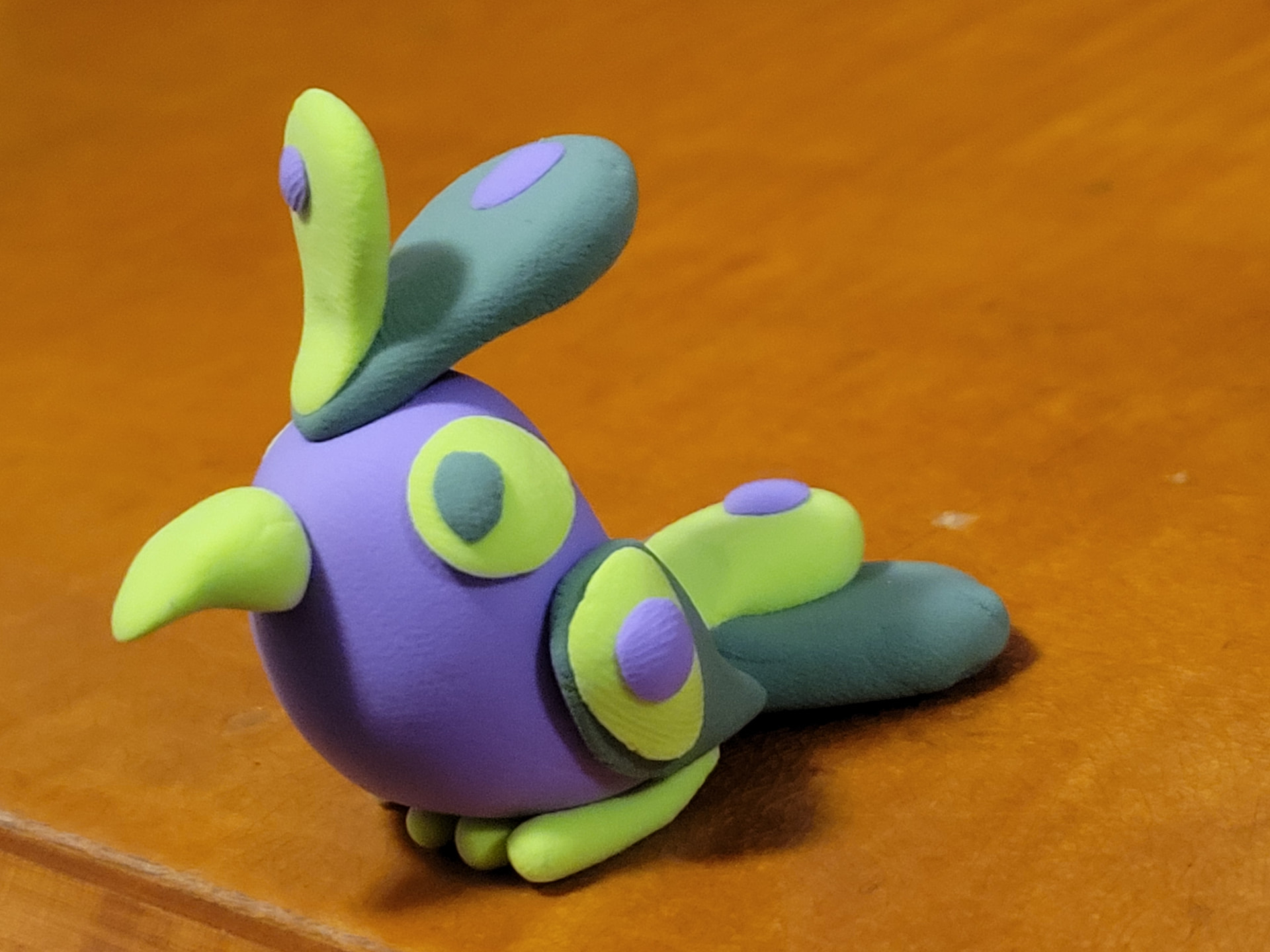 Sorry If the clay bird looks a little off. The white and black clay was really sticky. This bird’s name is Bluecloud