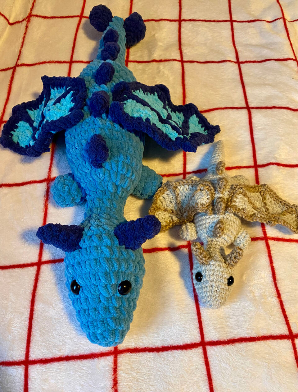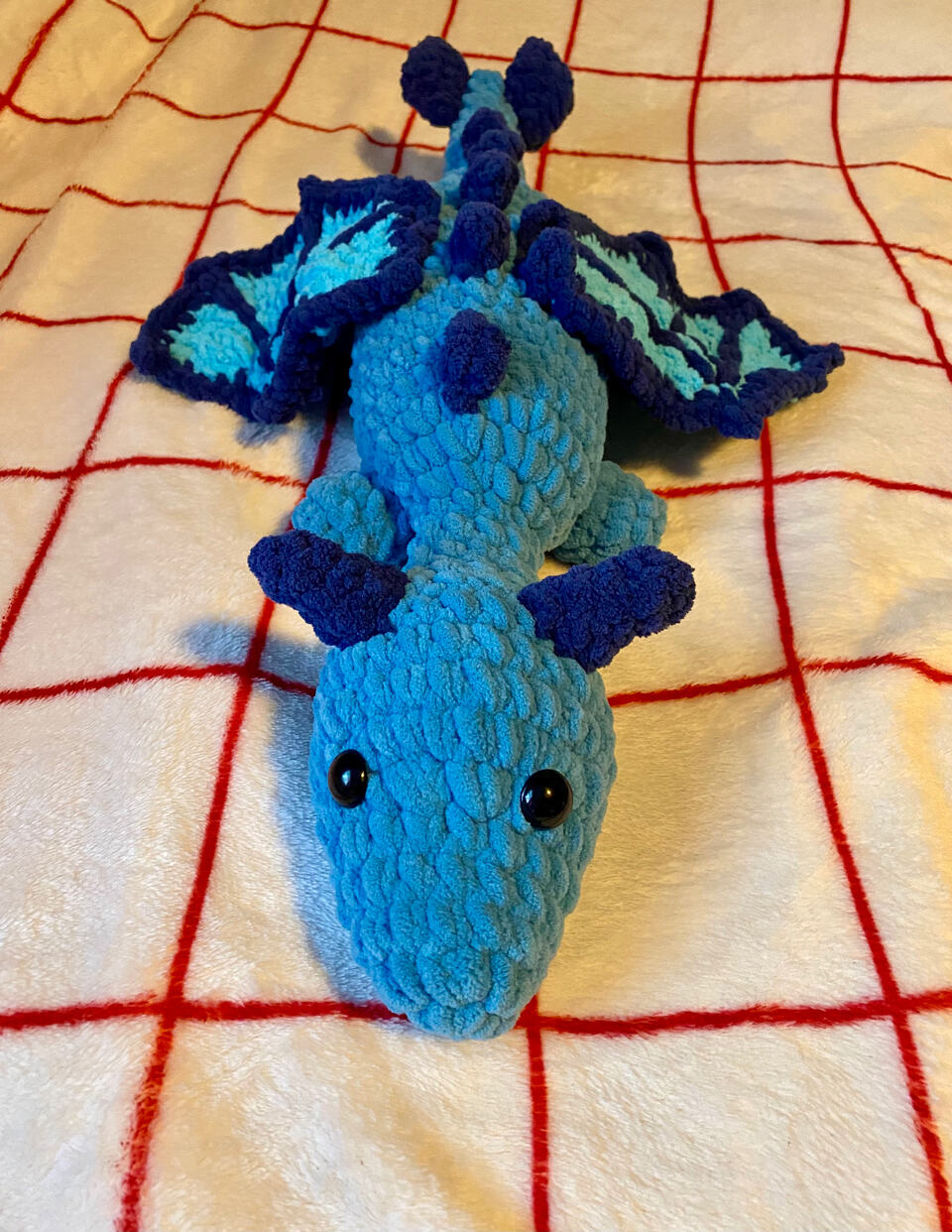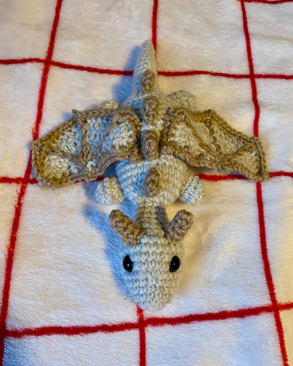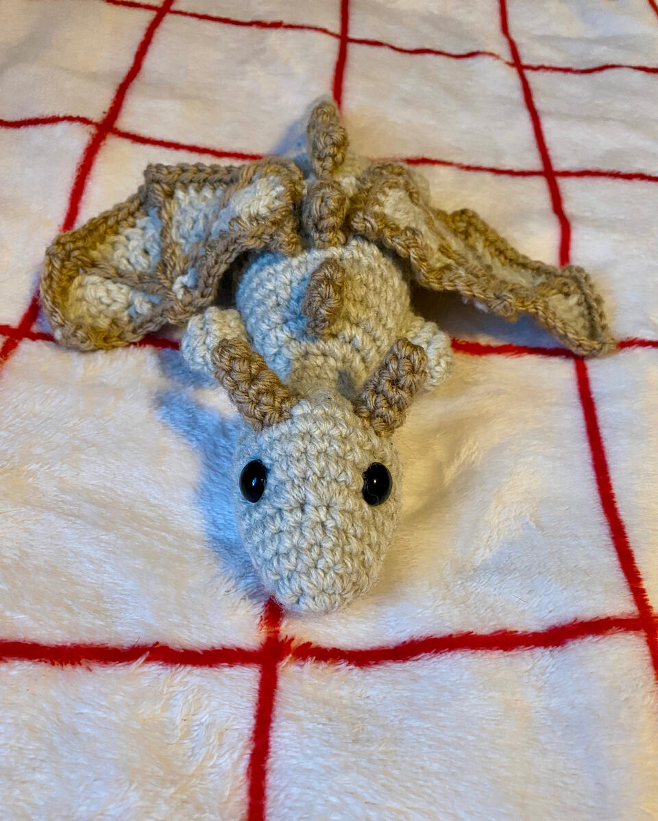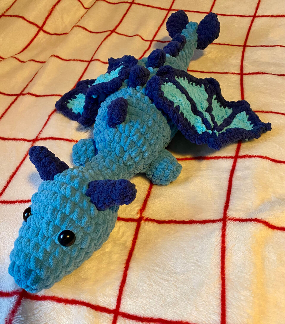 Hello again! I have returned with yet another pattern in need of testing, this time for a dragon! There are a couple ways to personalize him: there are two wing options and you can choose whether or not to add some spikes!