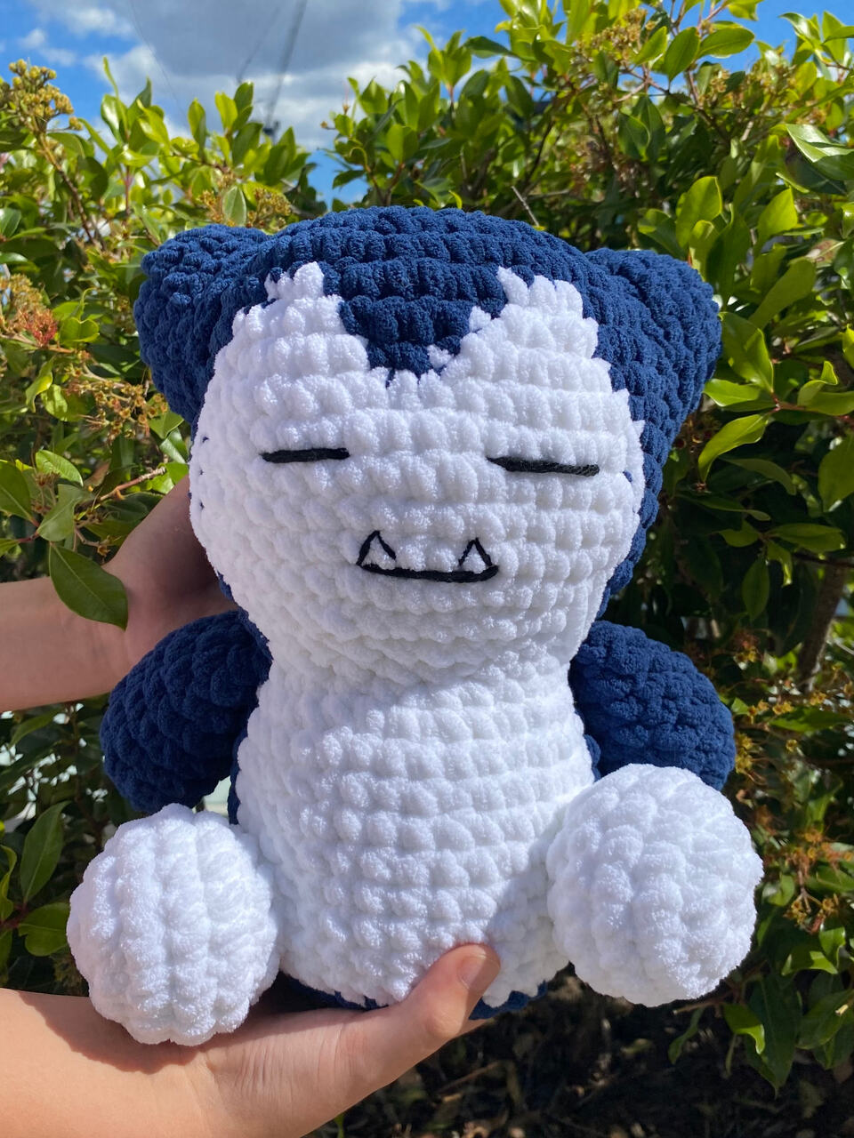 I would love to test this cutie <3 I would use white, yellow, and purple acrylic yarn with a 4mm hook. Good Luck with Testing