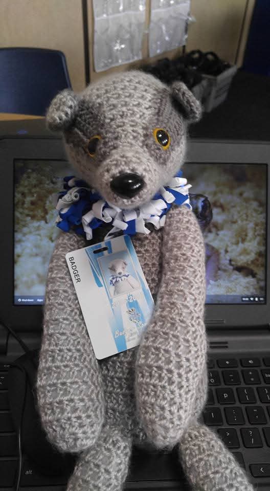 I would love to test. I would be using I Love This Cotton yarn and a J hook. These are no Ribblr things I have created. The badger was my classroom mascot for over 10 years.