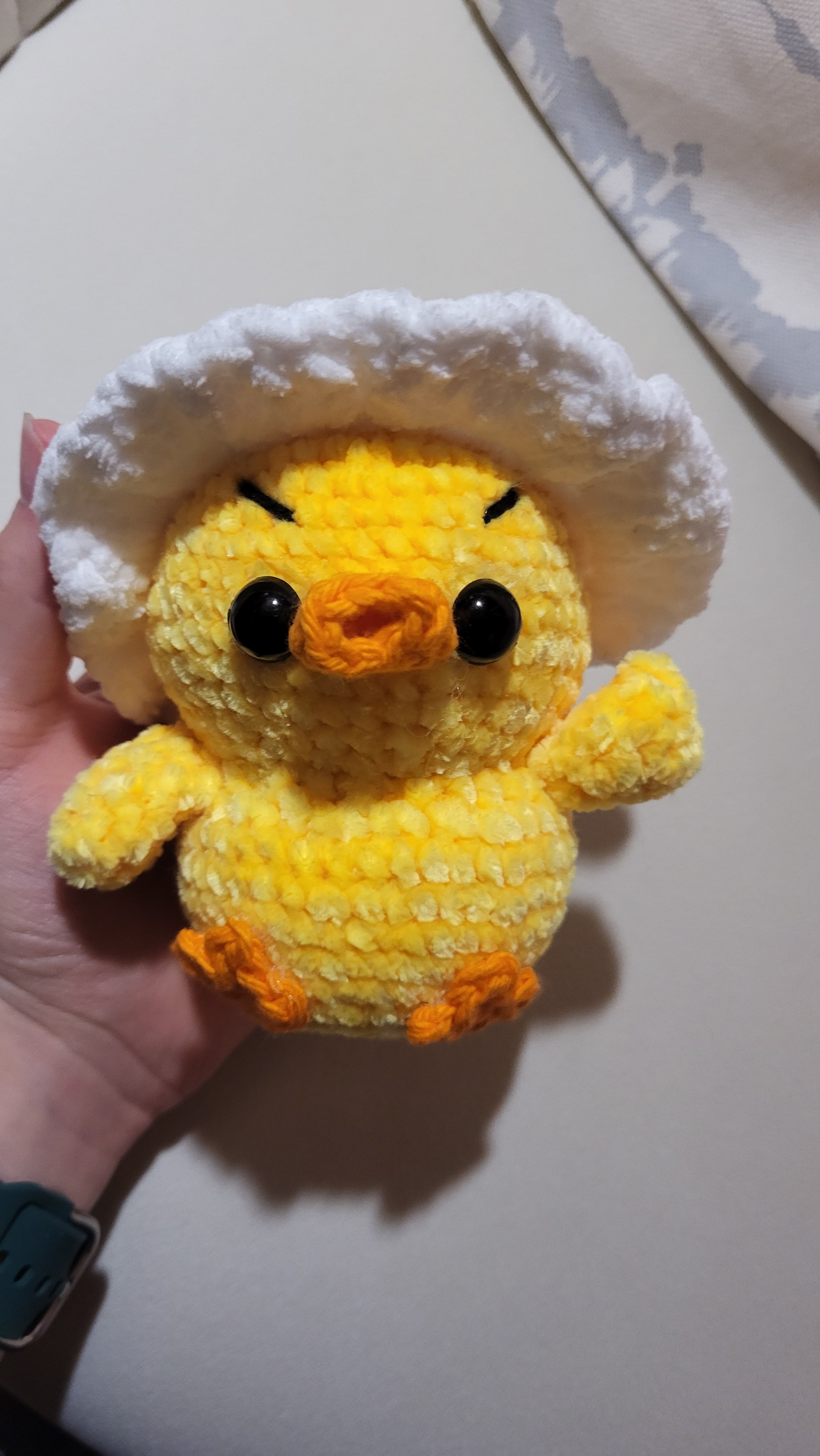 aww this is so adorable! I’d love to test this using plush yarn with a 4mm hook (I might make another one using skinny chenille ^^) I’ll also be using sinker eyes!