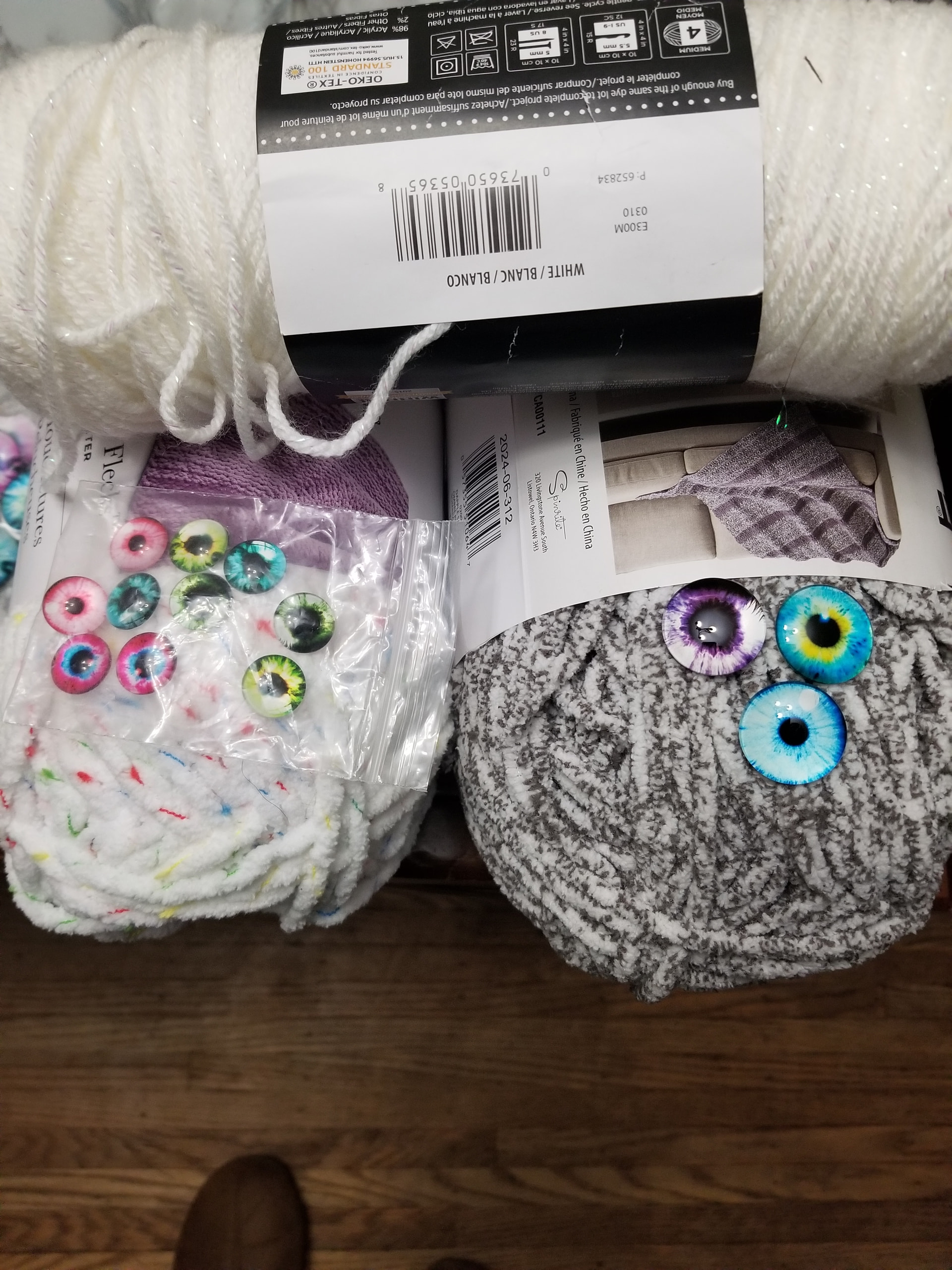 I would use feels like bliss and a 5mm hook if chosen. (Or if you prefer i do have plush yarn and tiny velvet ) And I have glitter sinker eyes I would use!