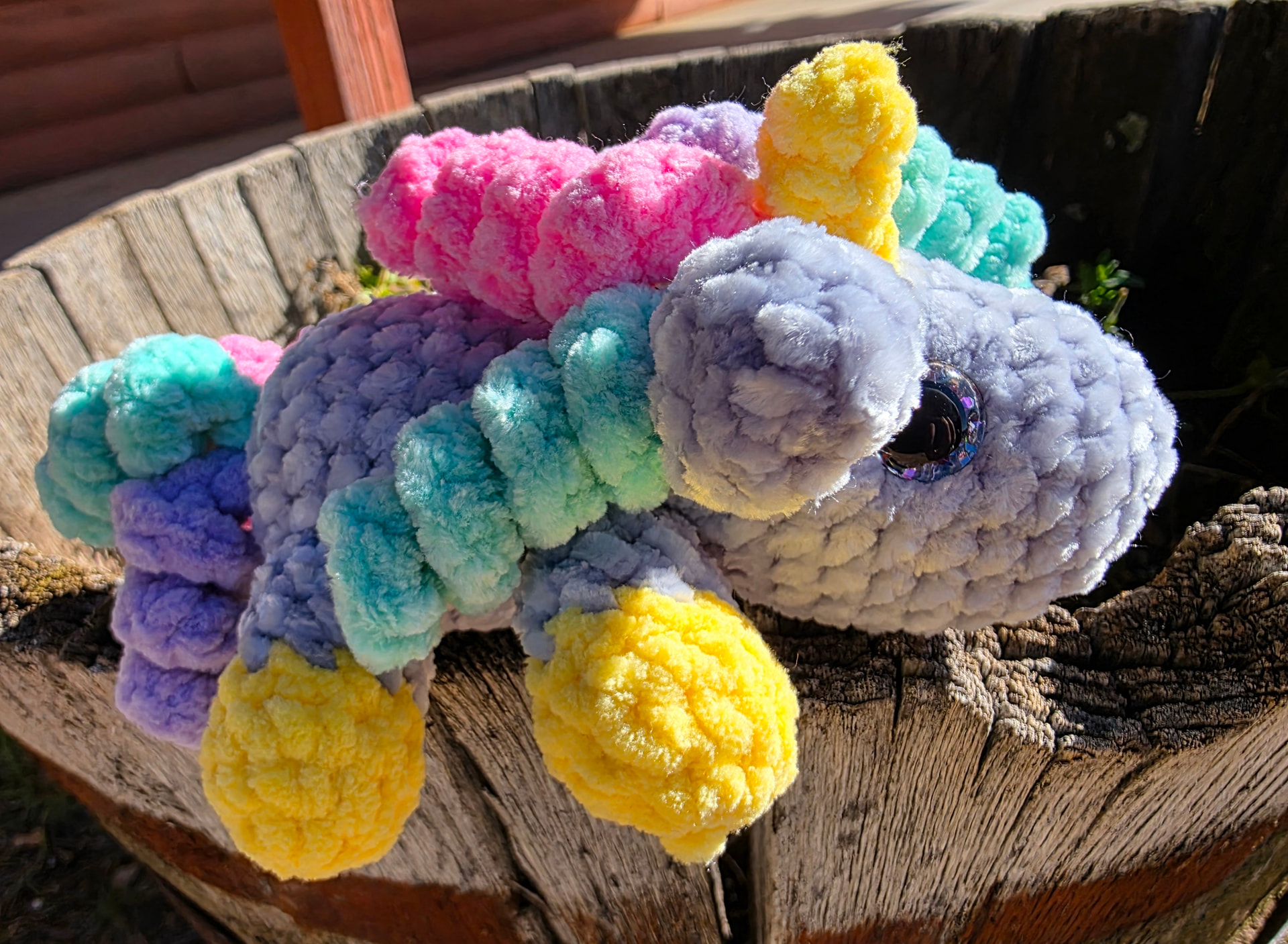 Would use skinny chenille size 4 with a 3.5mm hook- colors could be a variety- purple with pink spots, pink with purple, solid pink, or blues/ greens. Would be interested in doing all the animals in the mobile.