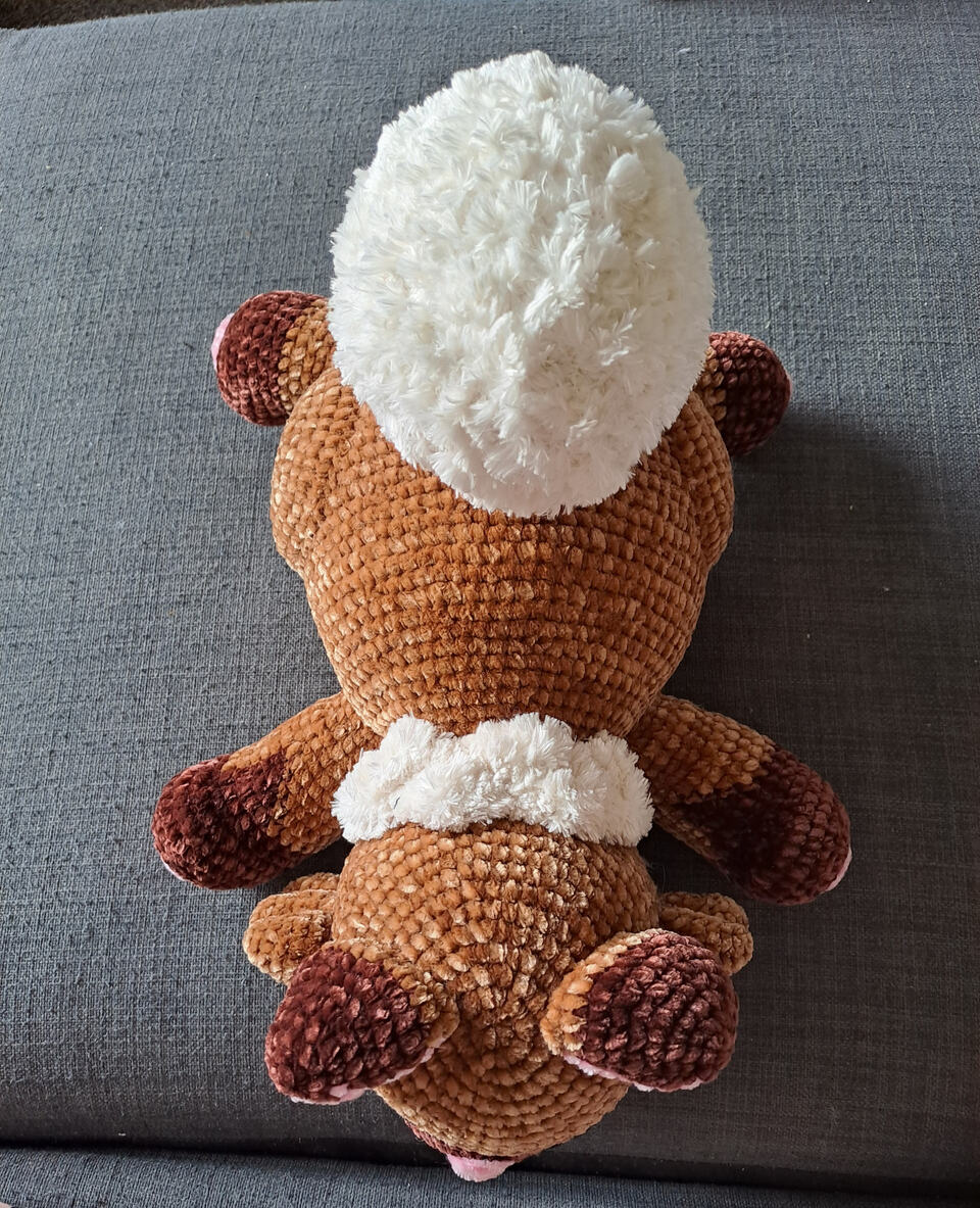 Pretty pretty please let me test! Walmart red heart yarn, 4.5 mm hook, and if I have green sinker eyes! I will use those eyes! Please let me test for you! It is too cute!!!