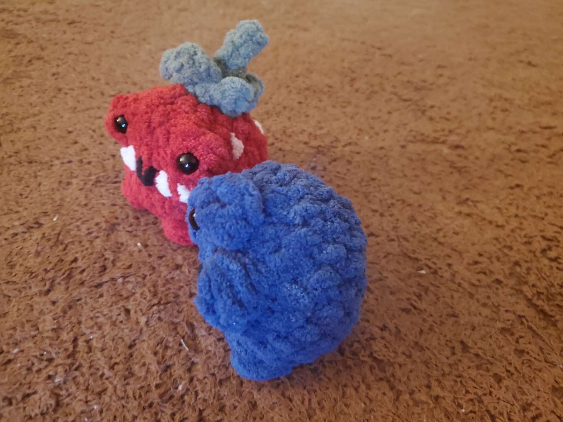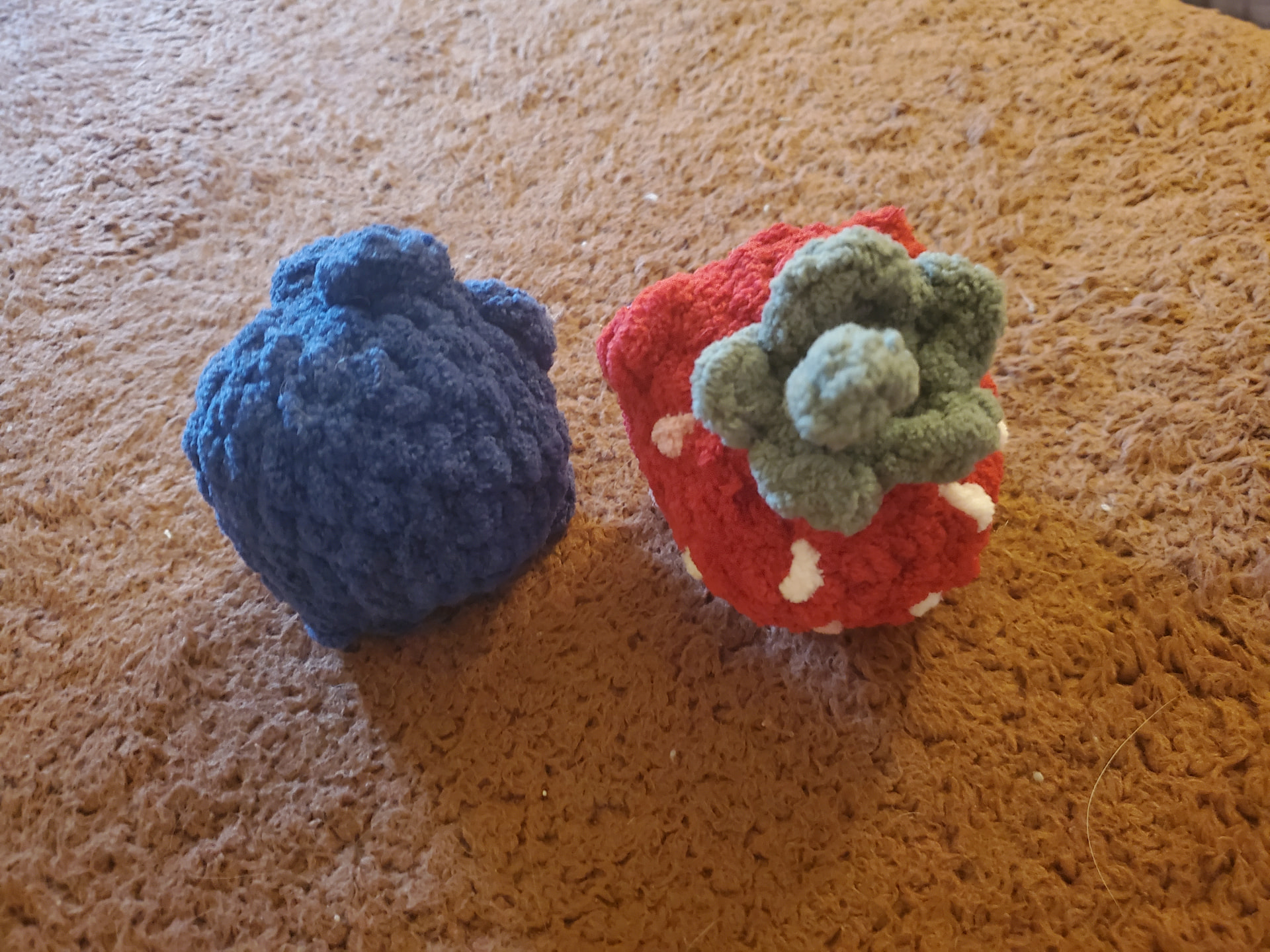 Hi ripple! I would love to test the strawberry and blueberry for you! (If it’s possible to do both) I’m going on a trip and I love small projects like this for that! I would use the same colors you did in various acrylic yarns with a 3.5 mm hook!![]()