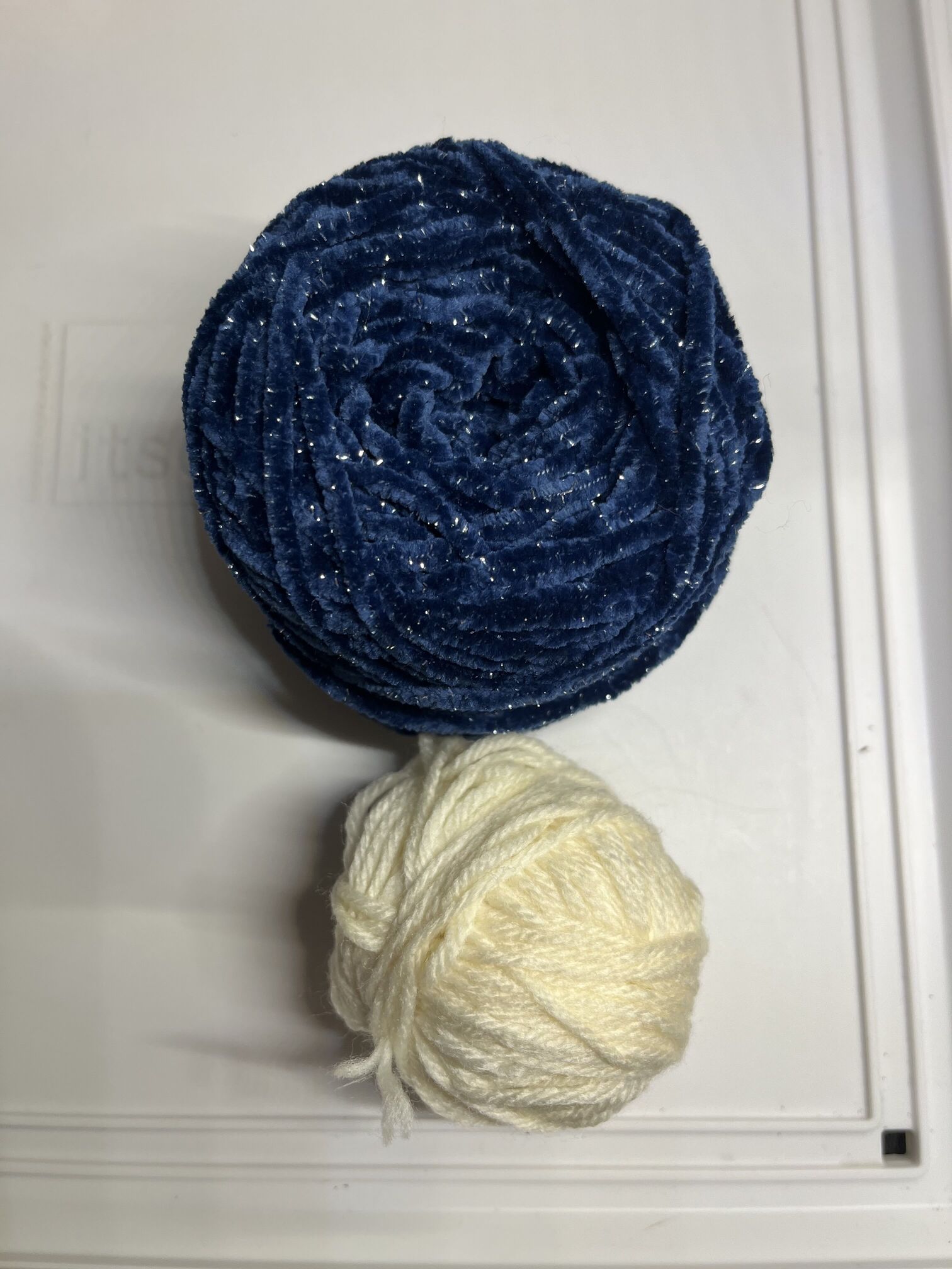 This is the cutest thing I’ve seen all day! I would be delighted to test the pattern for you. I would be using a dark blue sparkle skinny chenille for the shell/exterior and a size 4 cream for the interior. I would make it with a 4mm hook.