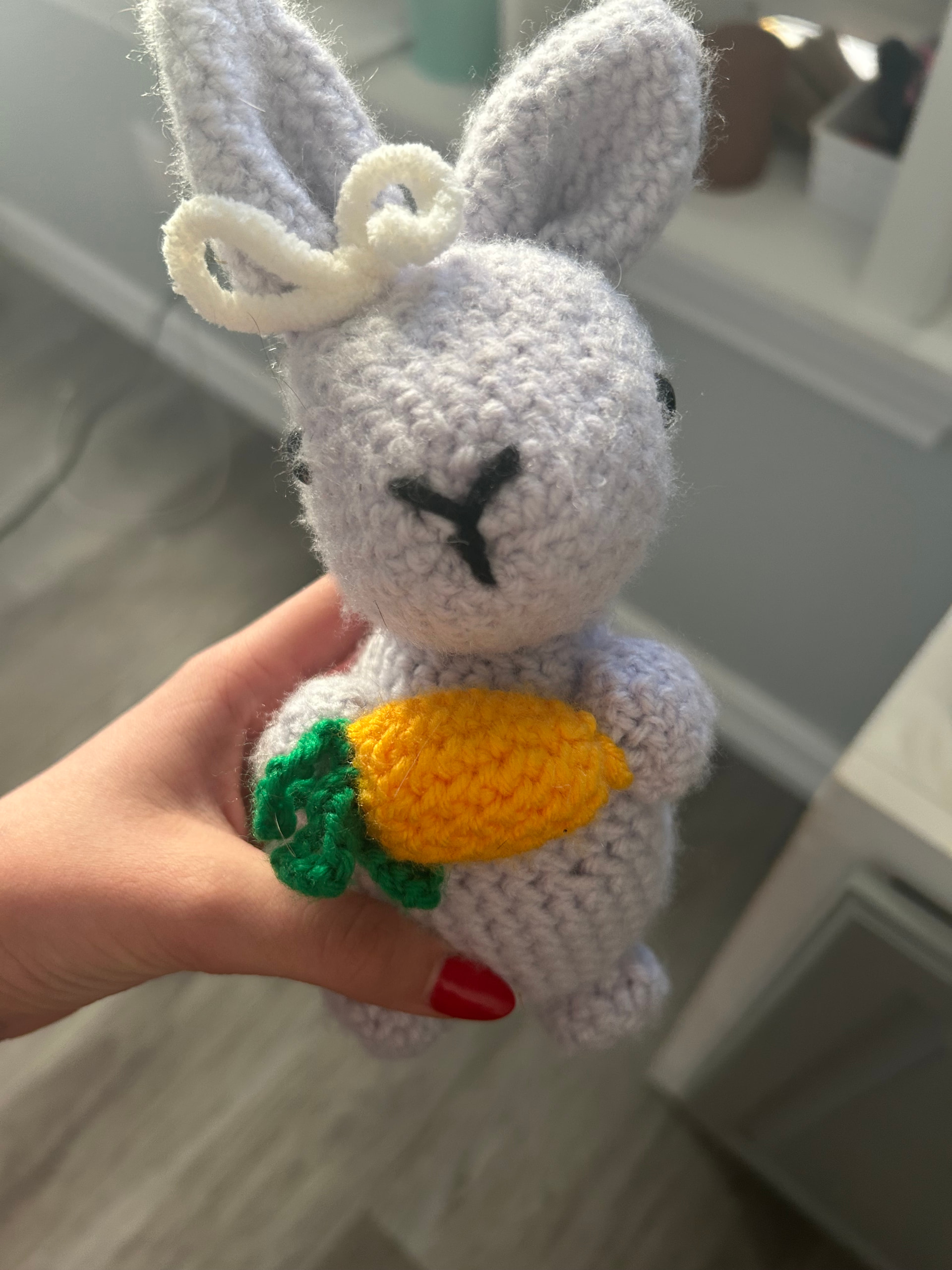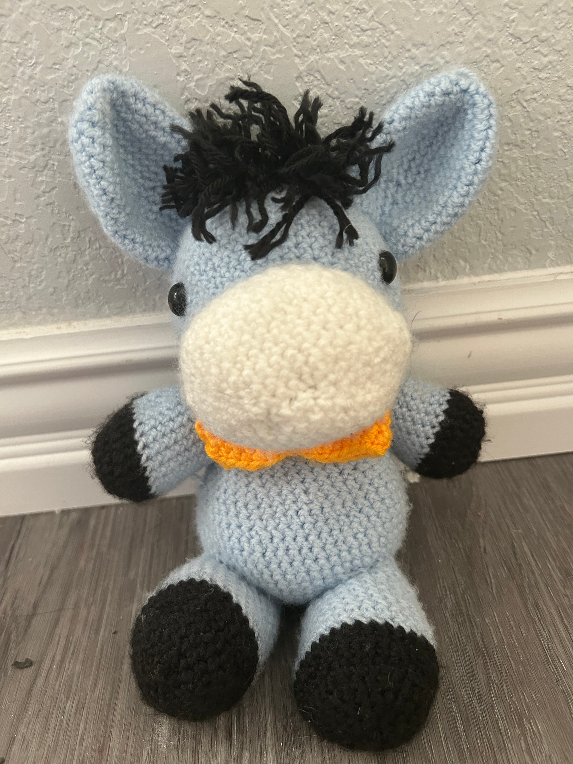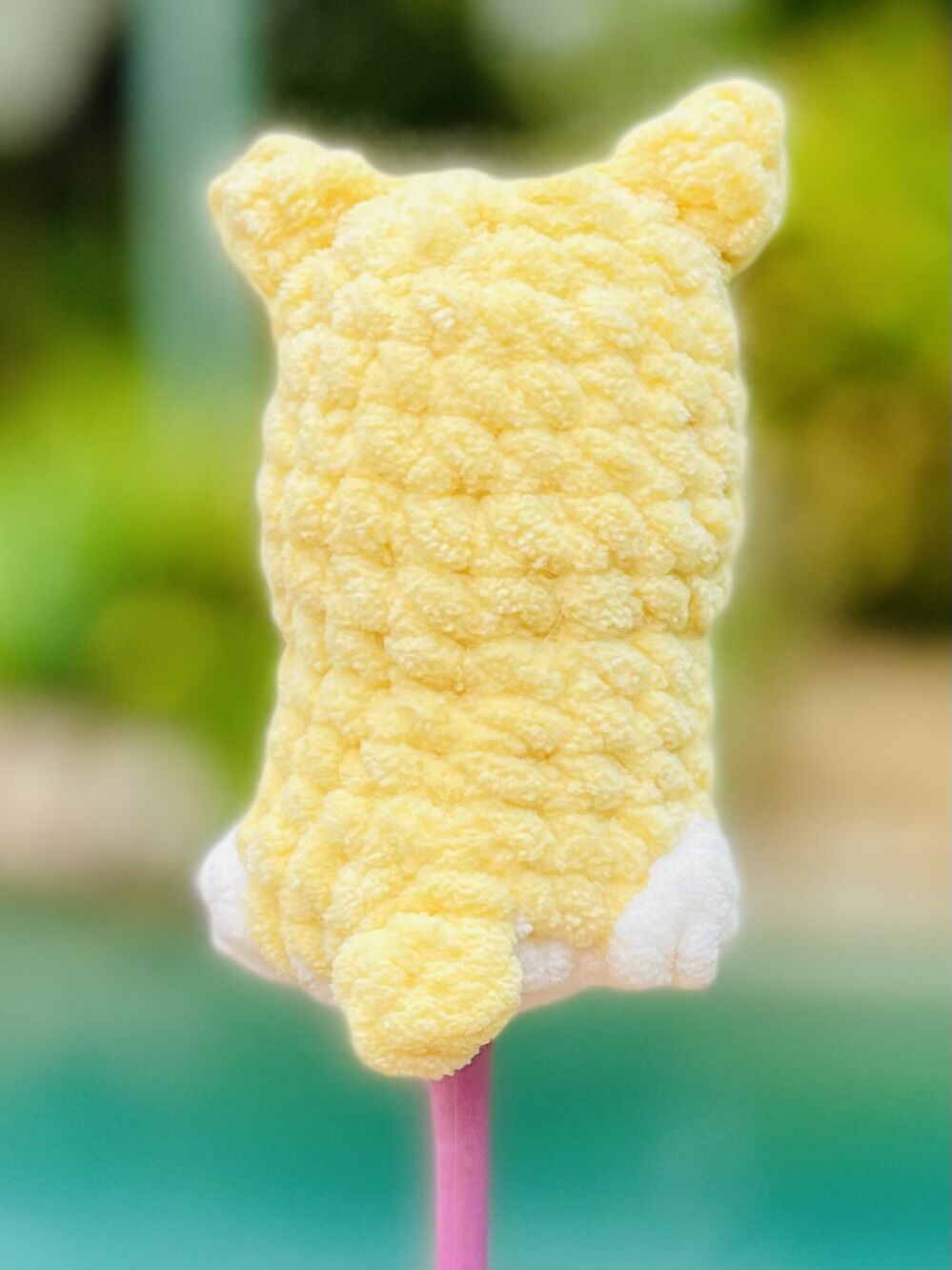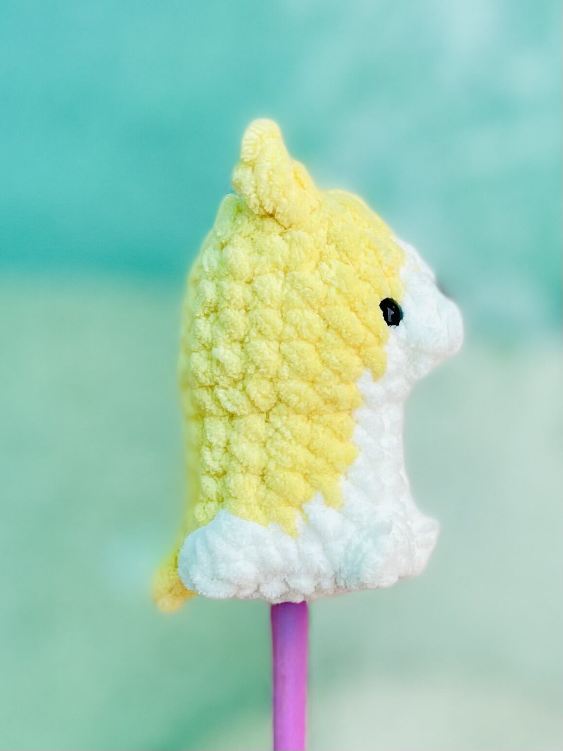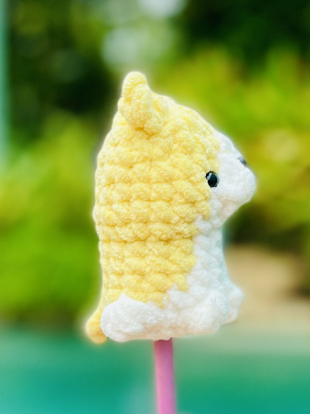 Awwww, itβs so cute! I would test with yellow and white yarn in a medium weight and a 3.25mm hook!