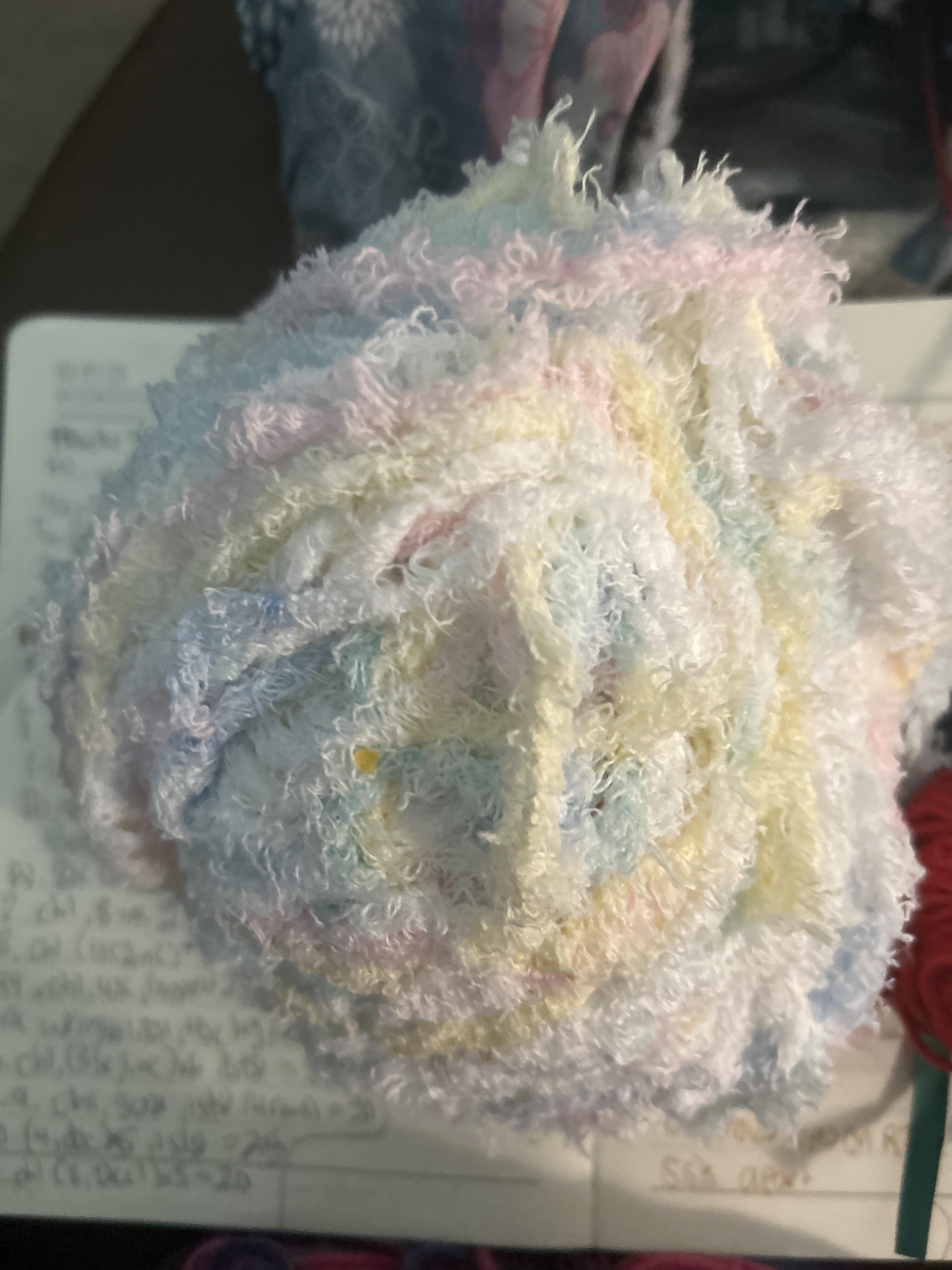 I have only some white yarn that’s fluffy. But I would use a 4.00-5.00mm if that’s ok and here is the yarn I’ll be using