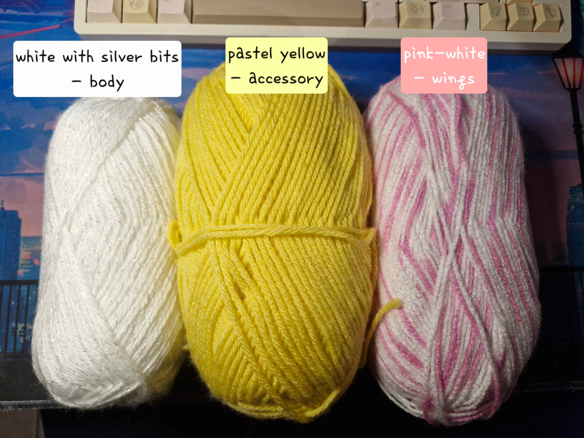 I can also use acrylic yarn in white, grey or light blue with 3.0 or 3.5 mm hook