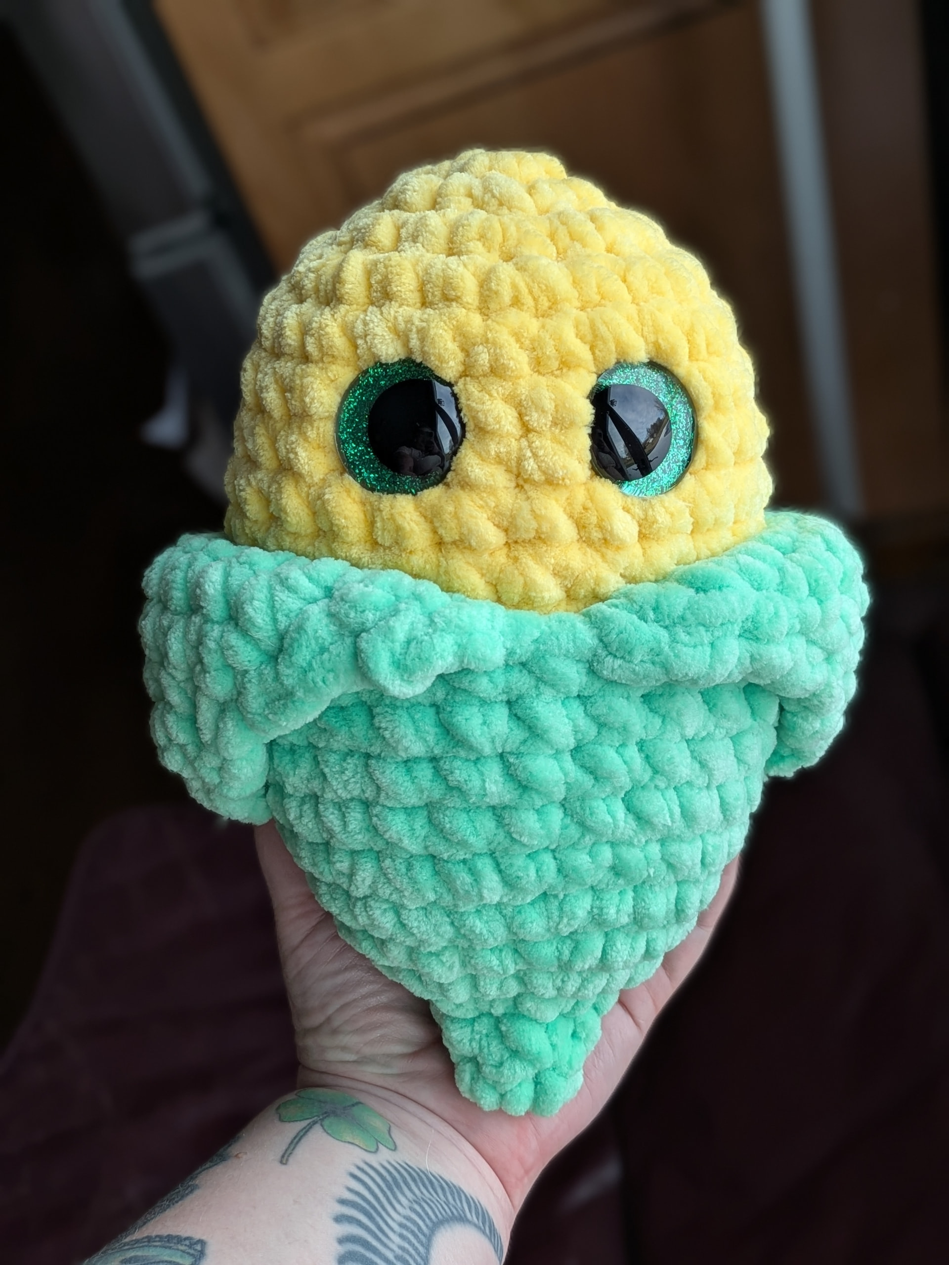 He is everything! I use Alize Velluto and a 7 mm hook. Would love to test