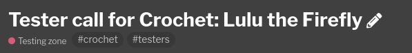 I need testers for my Lulu the Firefly - Crochet ePattern