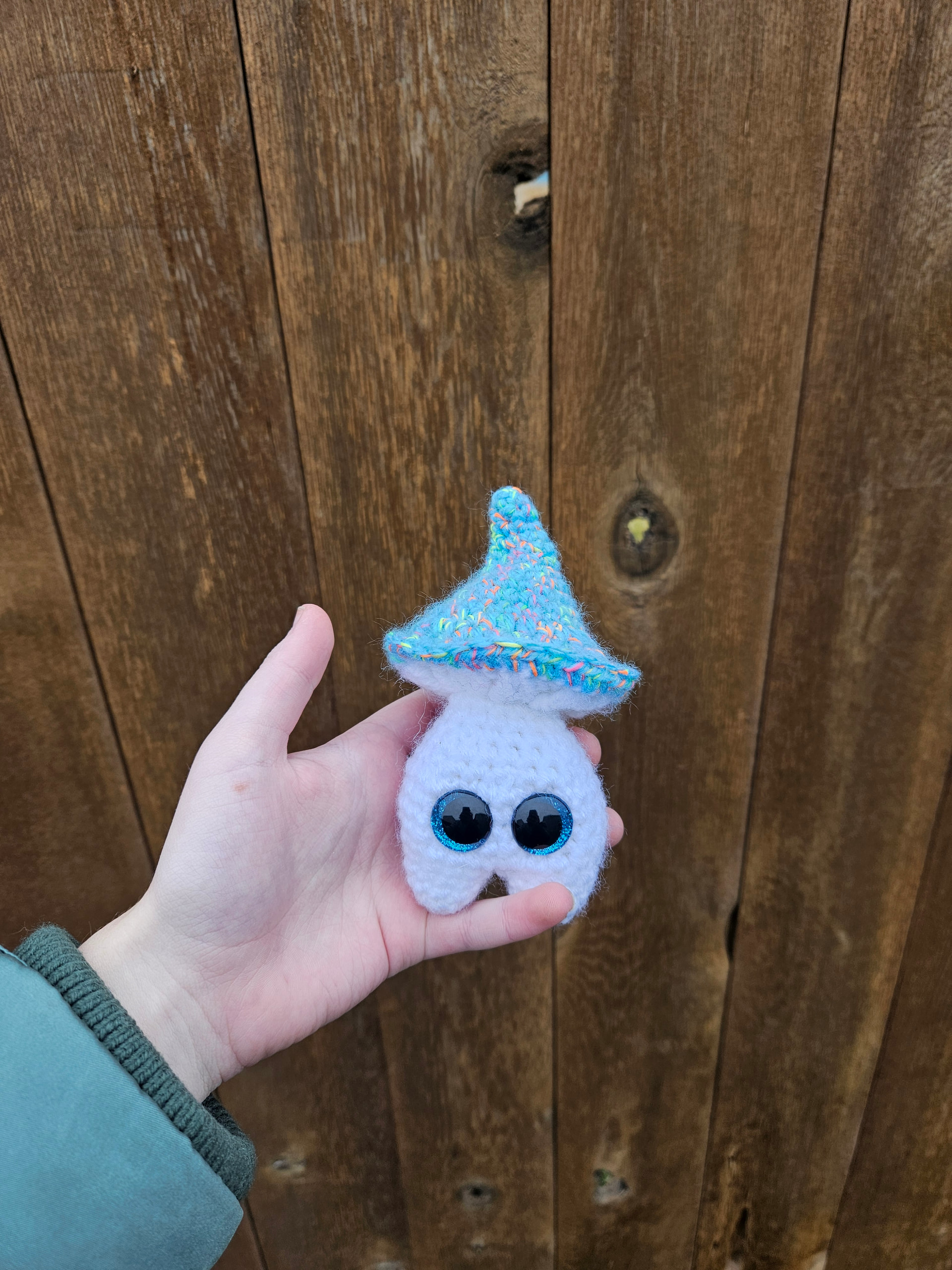 Hi! These sprites are absolutely adorable and I’d love the opportunity to test for you! I’d be willing to use either acrylic or plush, or both depending on time! I’d use white for the stem and a variegated weight 4 acrylic for the cap, as well as a size 5 hook! ![]()