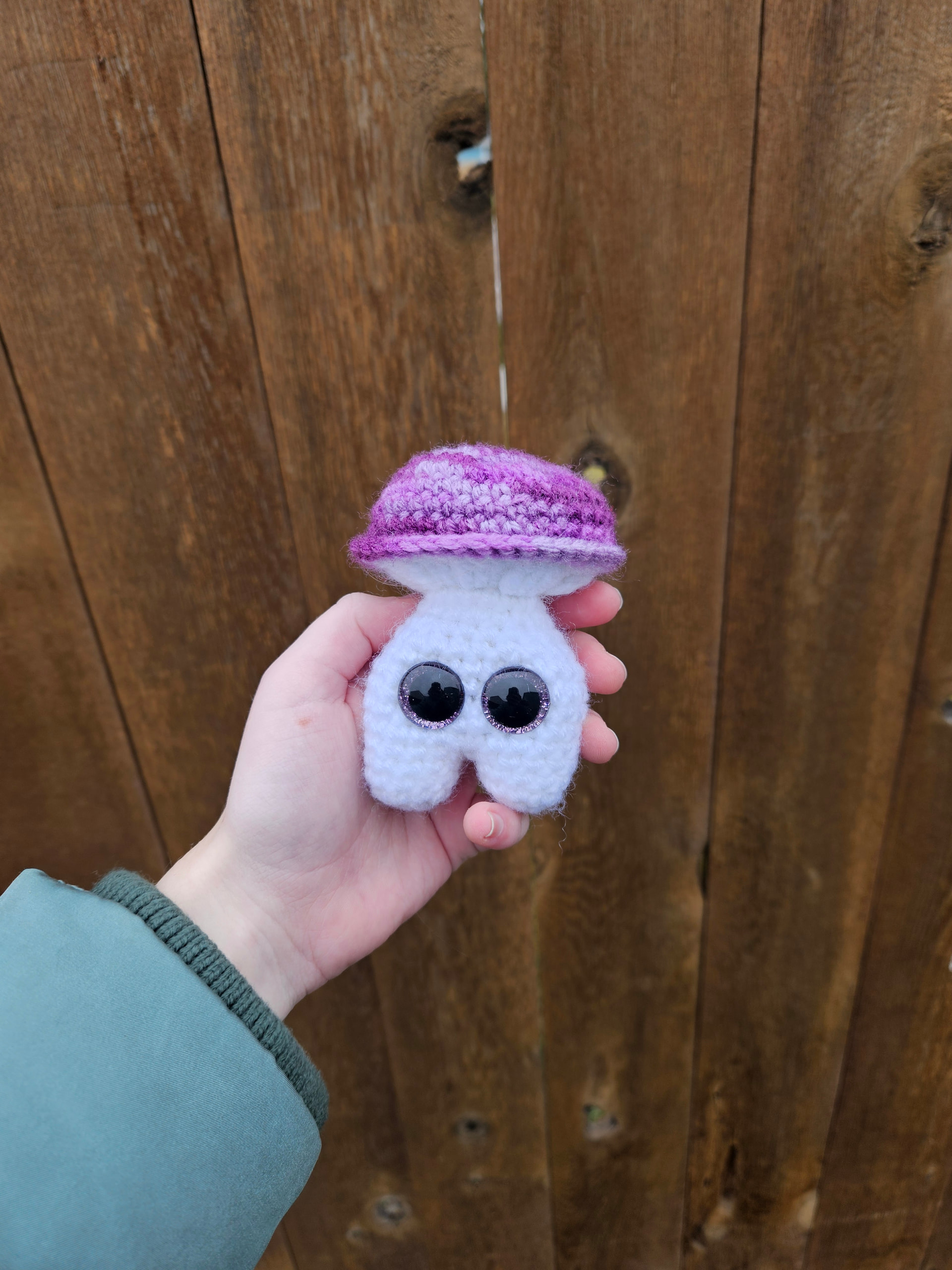 I’d like to test with a variegated acrylic yarn for the cap and a white one for the stem s and a 3 hook. ![]()