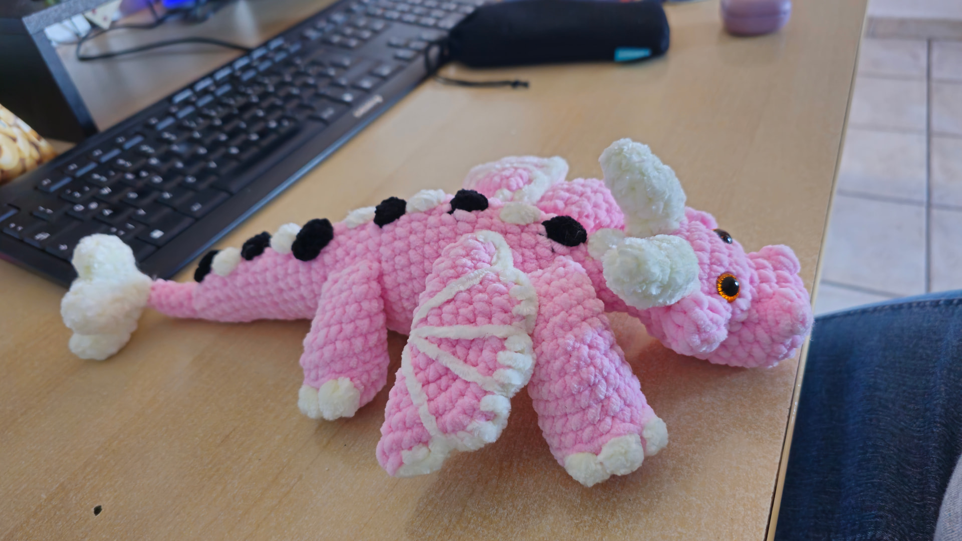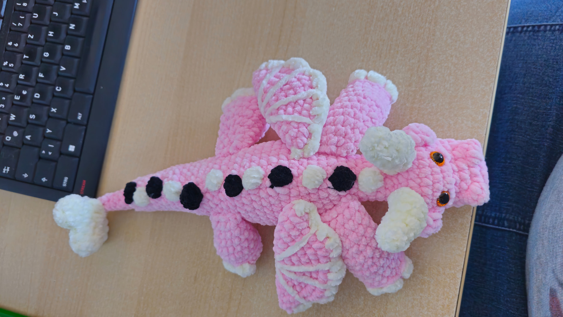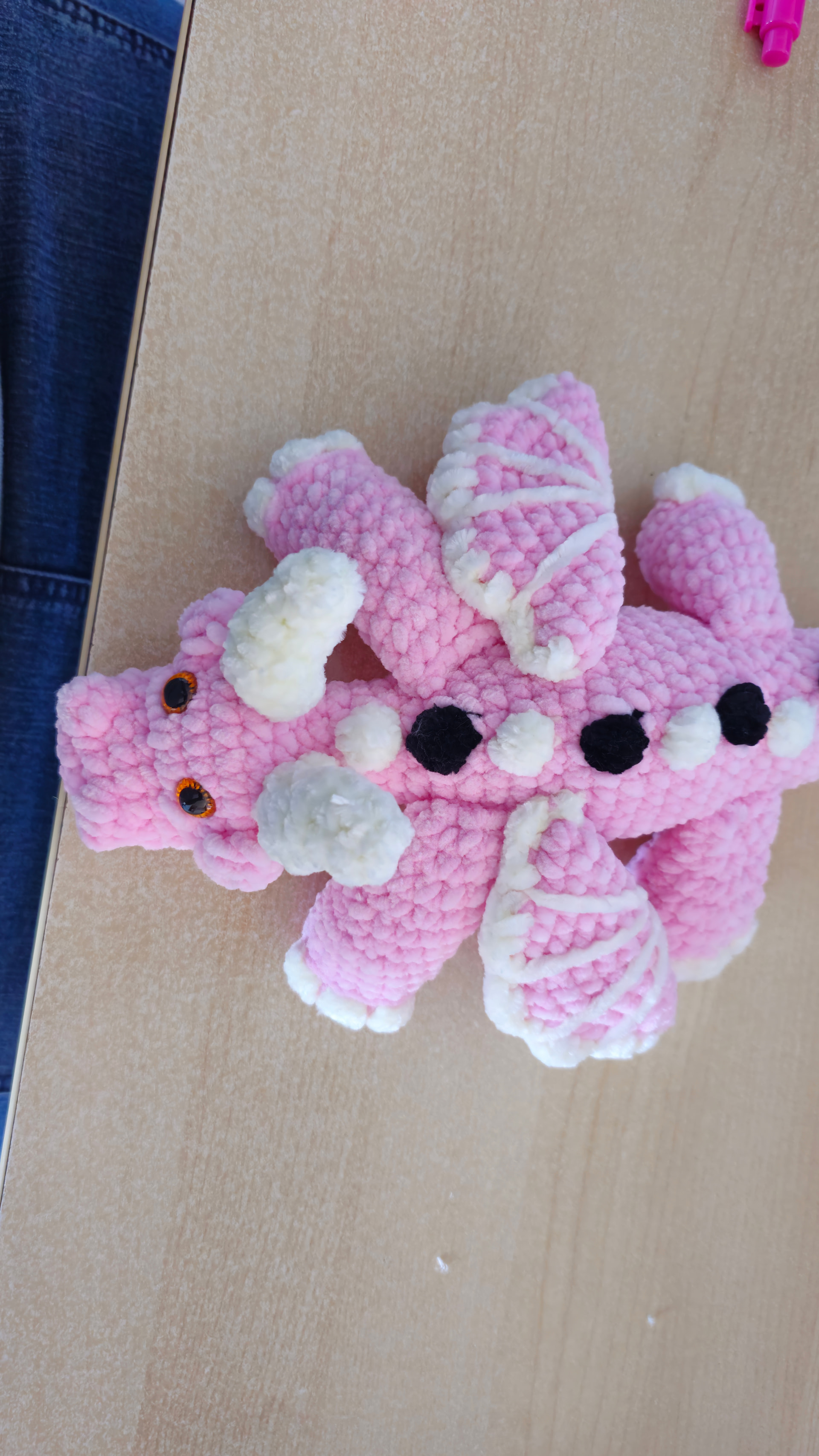 I had originally said that I would make the dragon using deep blue chenille. My son would really like it in my deep red and orange DK yarn. I can do both if it would help you to see the blue chenille.