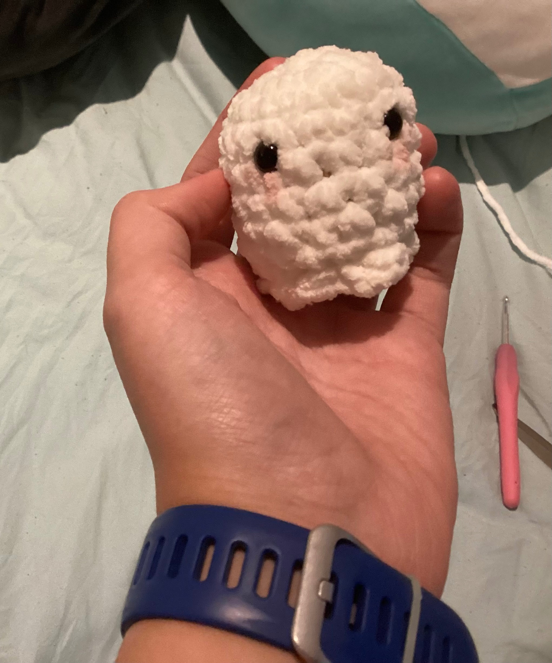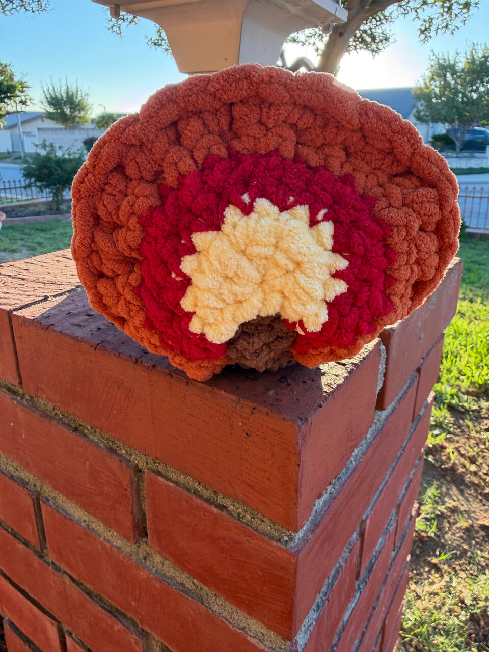 He is SO adorable!!! I would love to test him using browns and white! I don’t know the exact weight but it’s similar to acrylic yarn. I would use a 4.5mm/5mm hook! My favorite season is without a doubt fall(This isn’t my most recent make since I made a lot for a booth and sold most of it before I could get a picture But this is a fairly recent project lol)