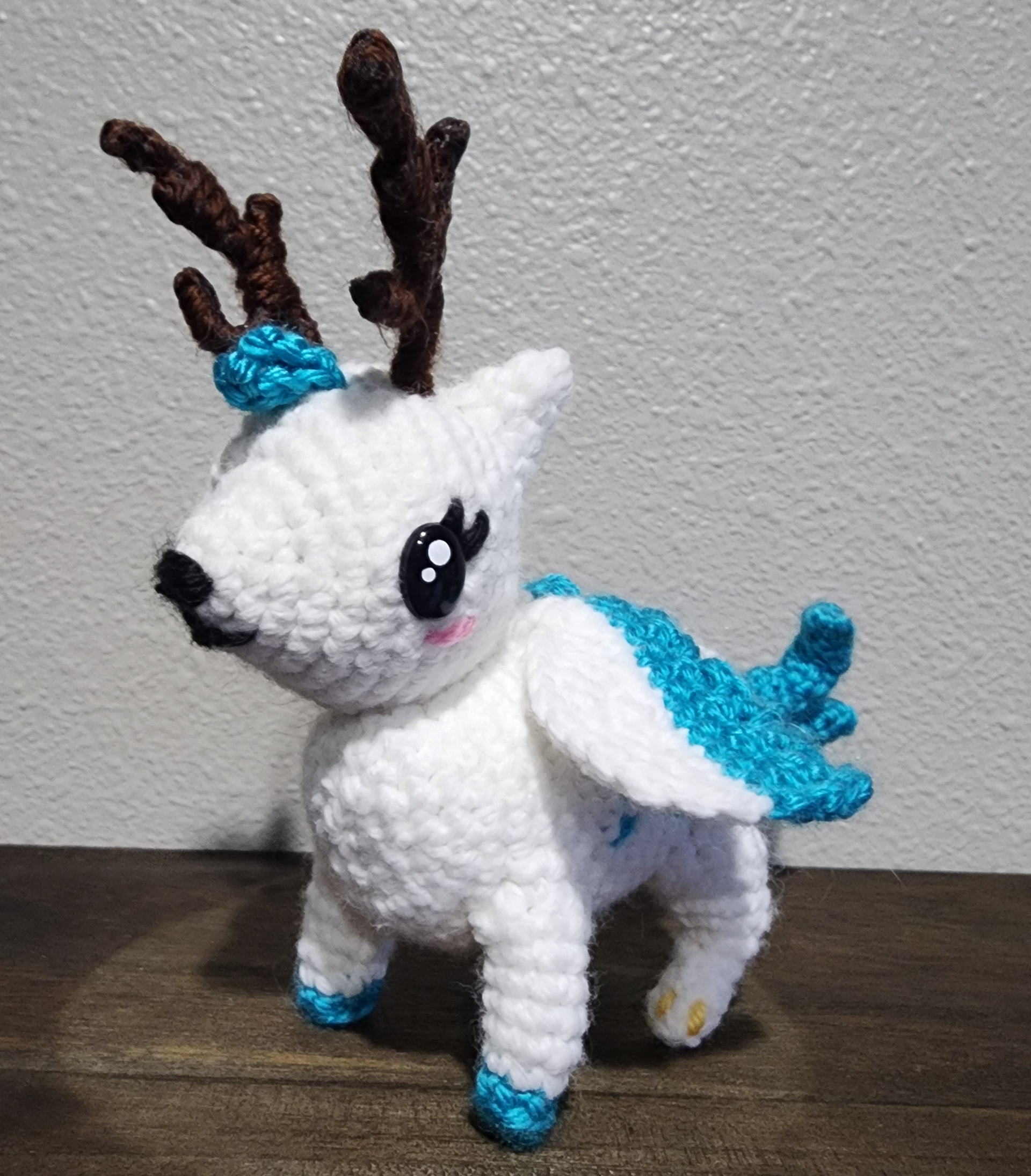 This is an intermediate pattern. It involves a lot of sewing, some color changing, short rows, and you have to get creative with the antlers. Optional to use wire in the wings as well. Don’t apply if you don’t think you can handle this!