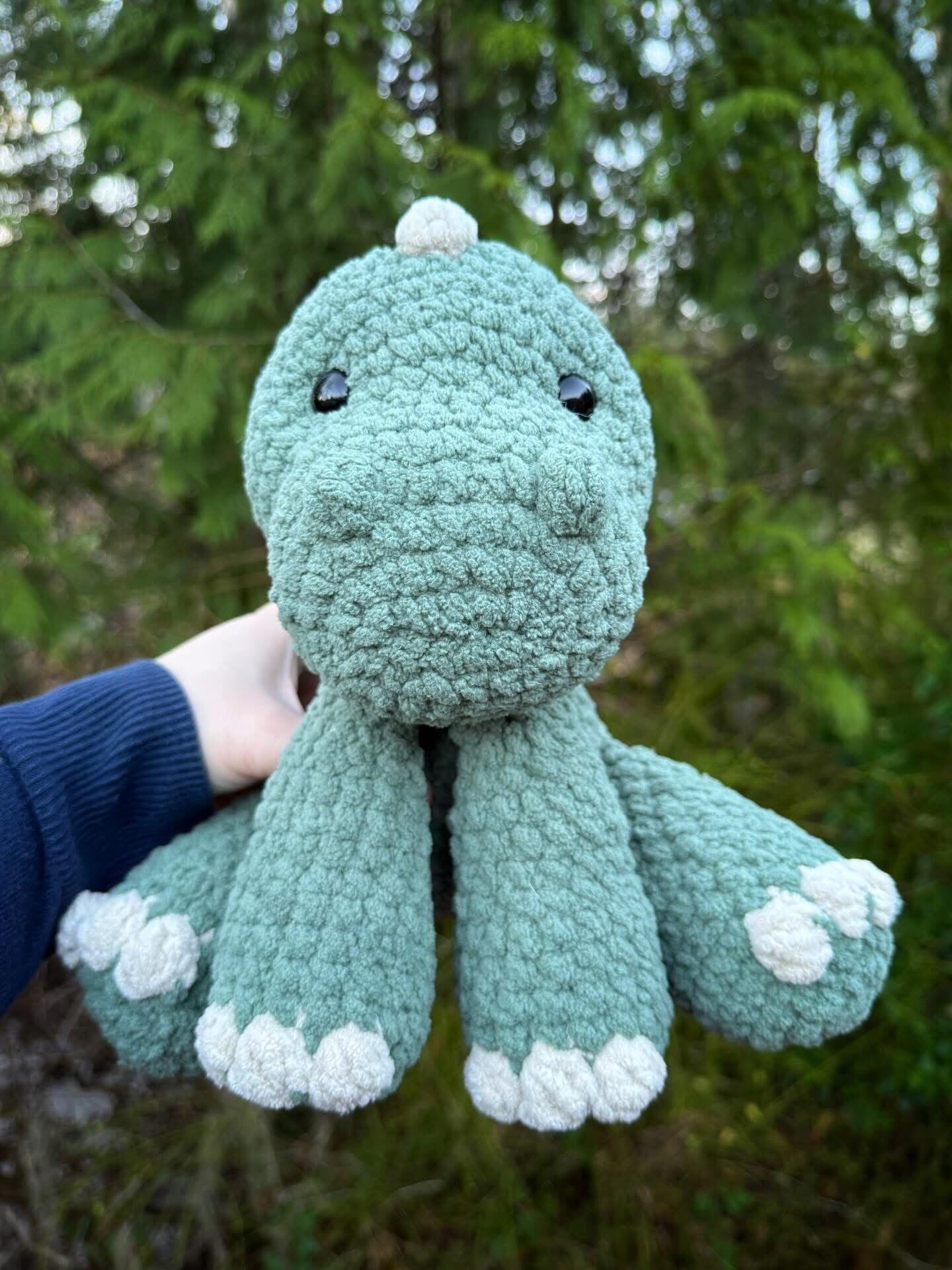 The finished pig is about 8.5” depending on the yarn and hook you’re using. :)