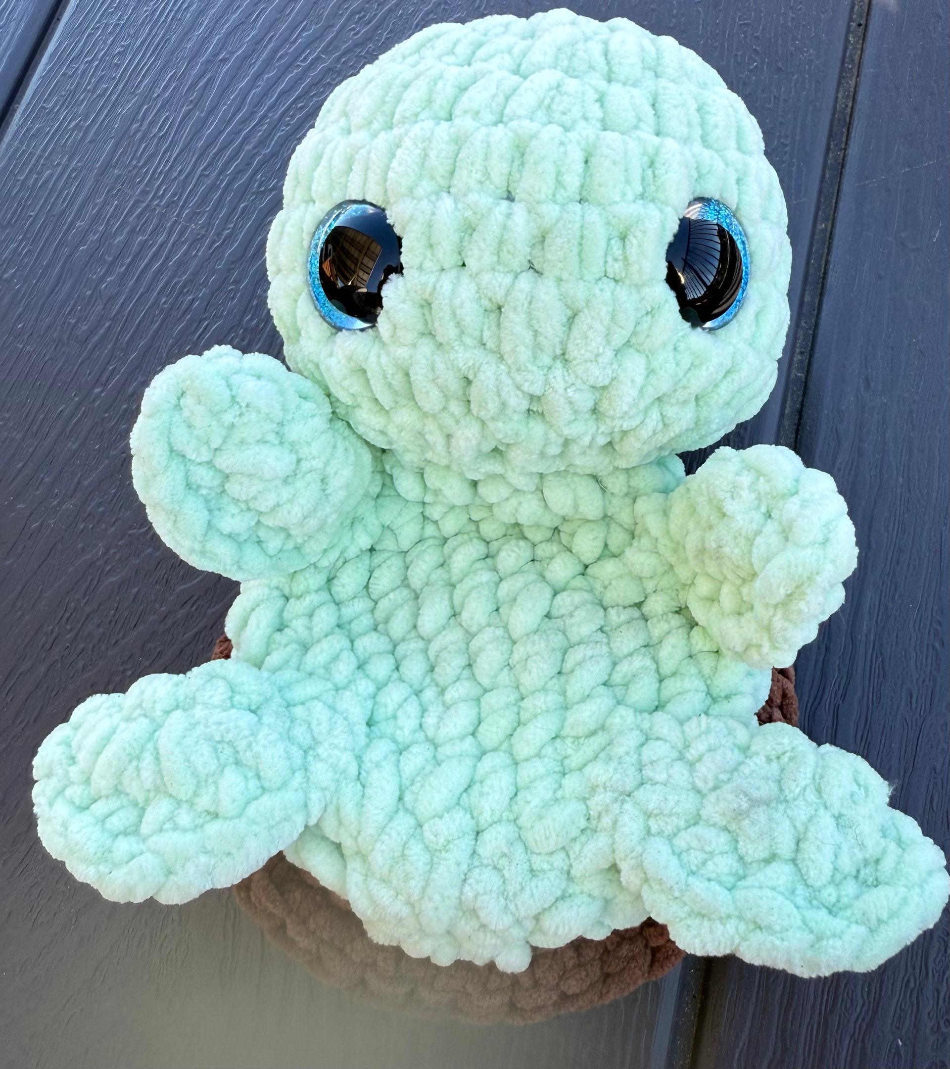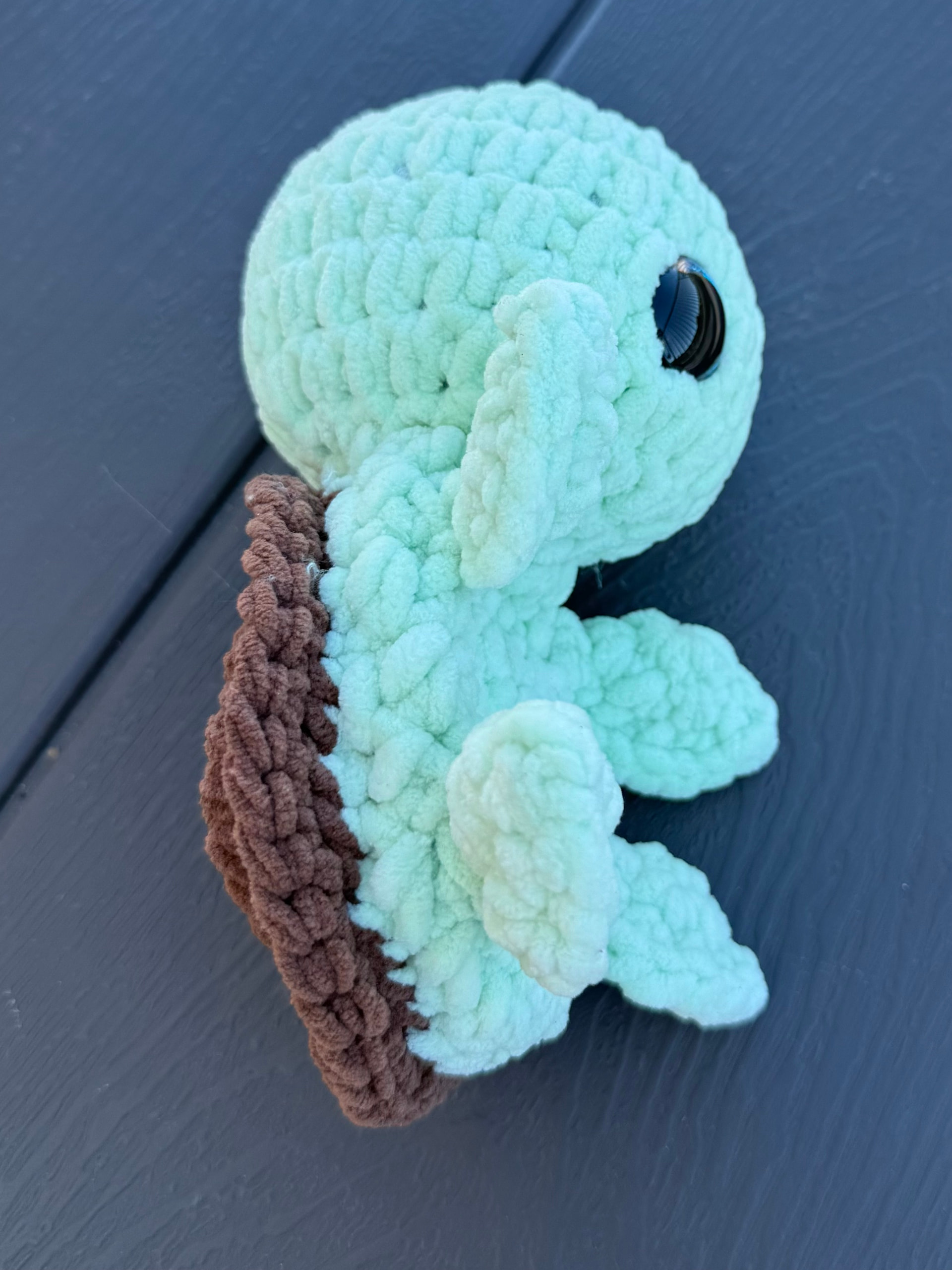 Yarn I have two go to options, I have blanket yarn, most Bernat, and I use a hook size 5.5/6mm. Or my other option is a plush yarn, it is a small independent brand called Patti’s Plush and I use a 5mm hook. I have a lovely sea foam colour for the turtle body and red coral colour for the shell in the plush yarn.