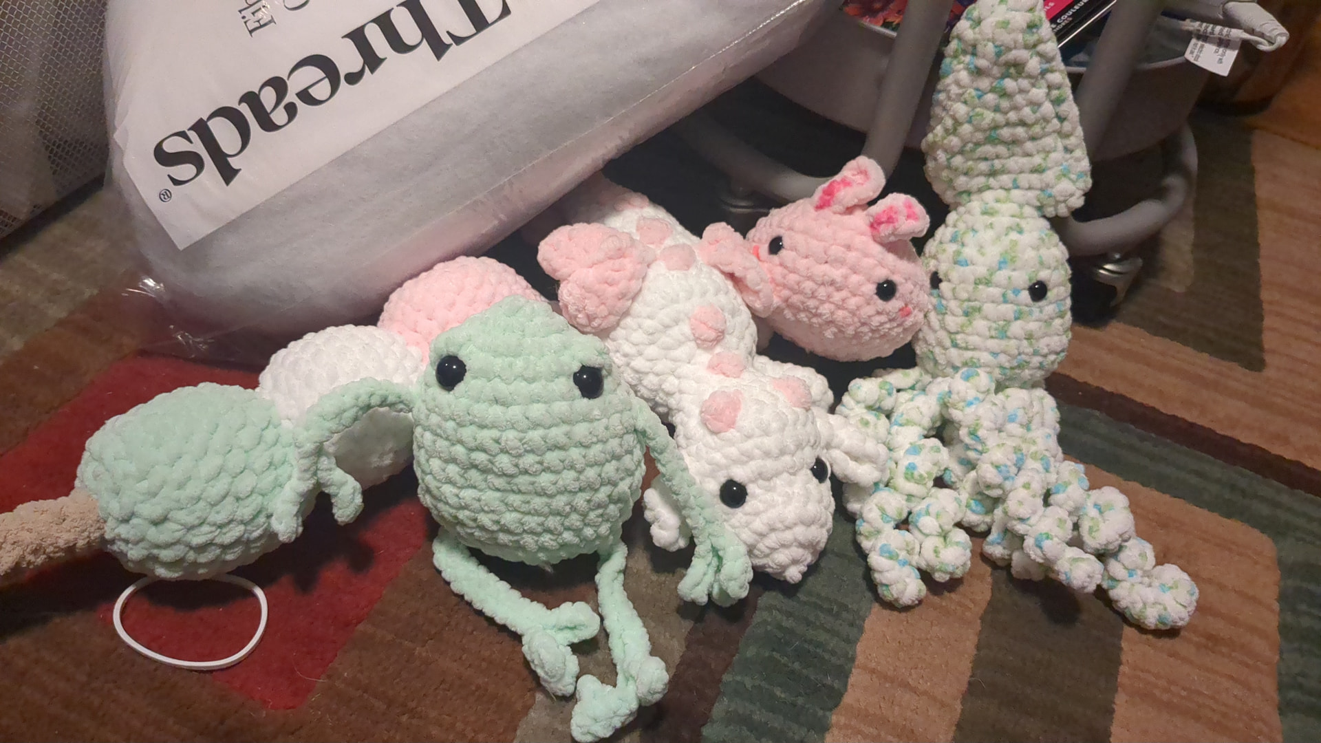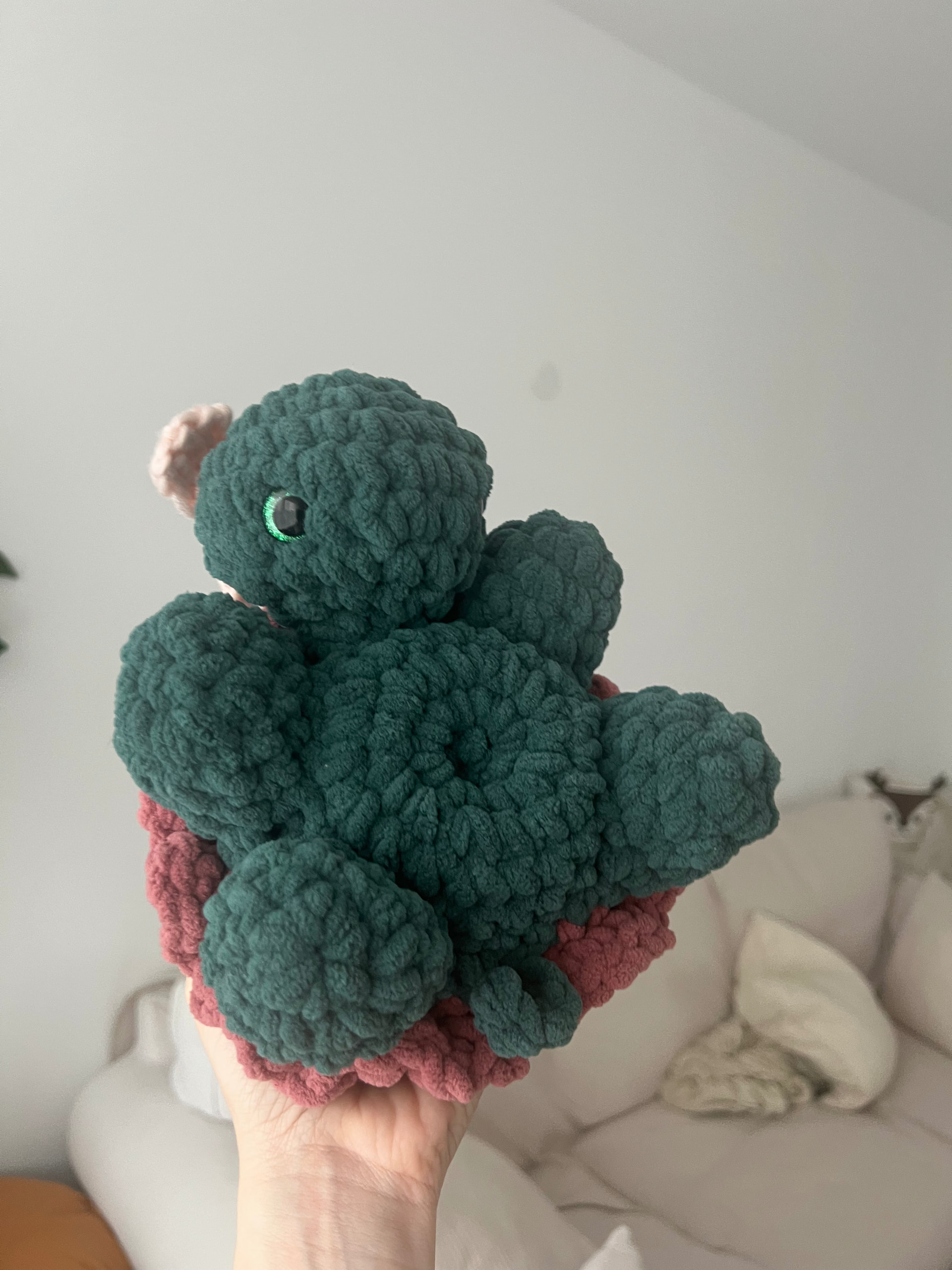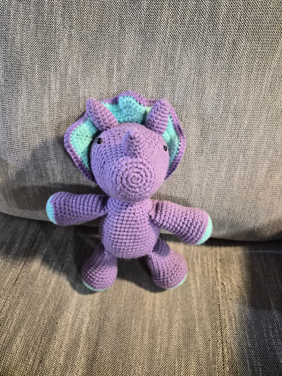 Ribblr just told me that I can only post one pic, but Iโm also waist deep (literally) in a huge Dino Iโm making for my nephews bday. This is my last finished project (and a tester for this pattern).