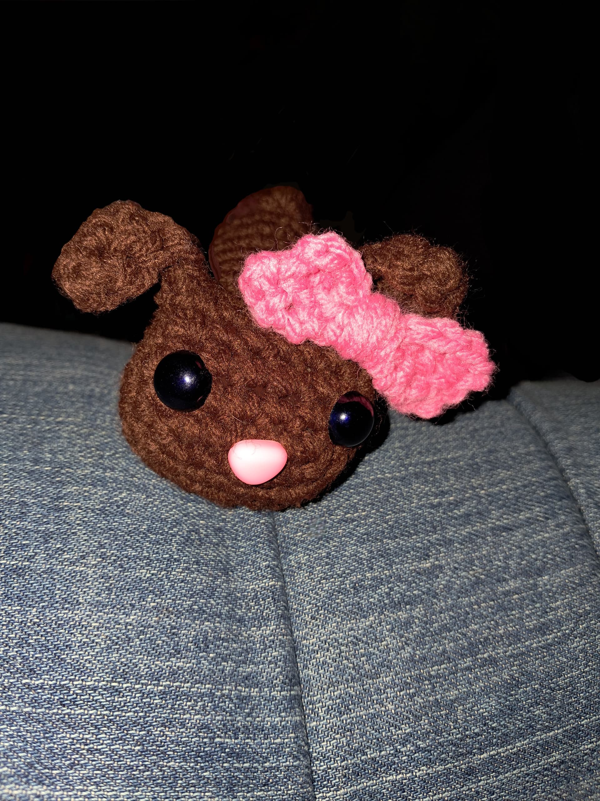 This bunny is part of a coquette bunny collab run by @Highlandcowcrochet! Thanks again to all my testers!
