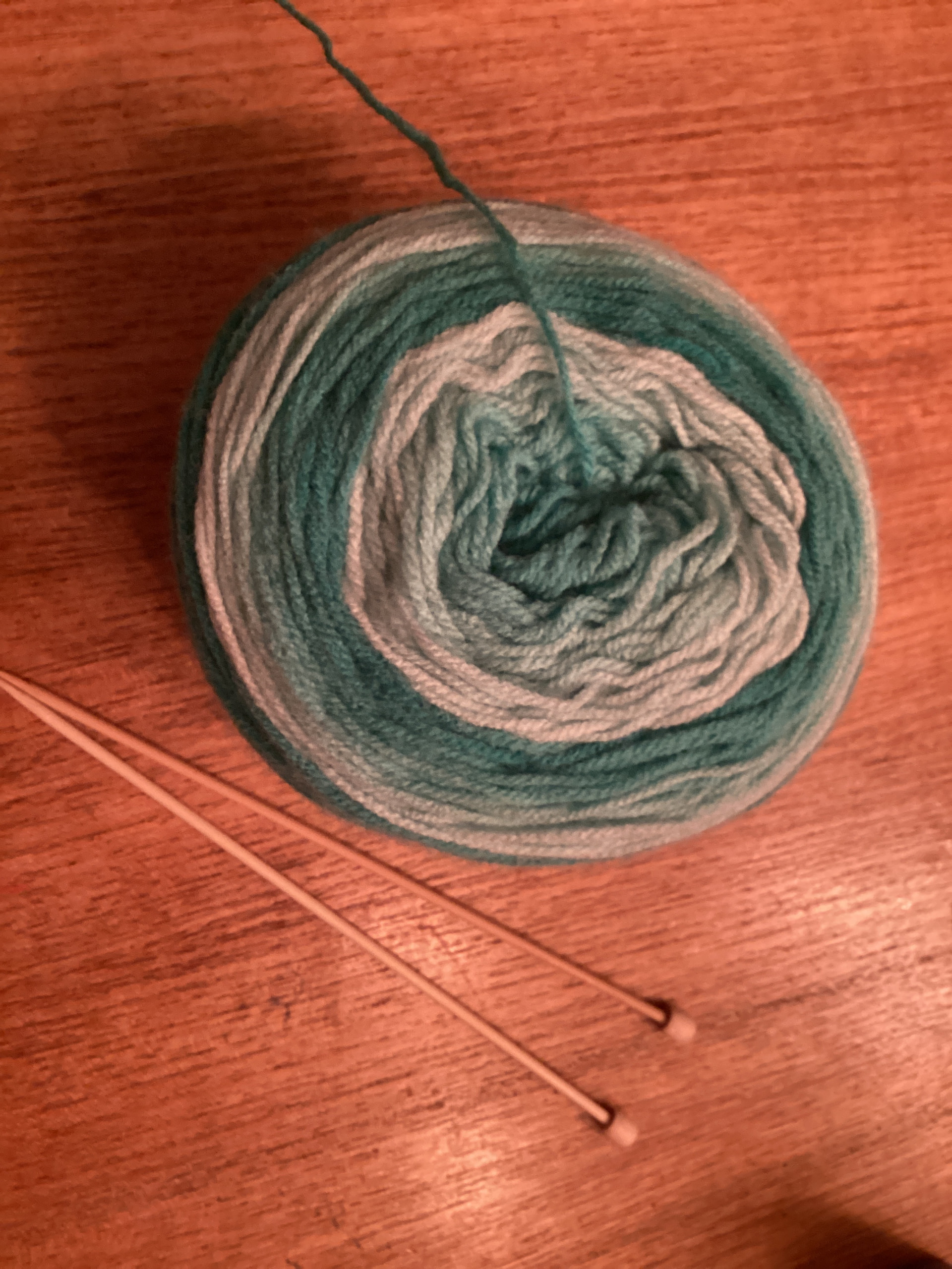 Here is my project i am making a scarf my second time knitting and itβs been a year wish me luck