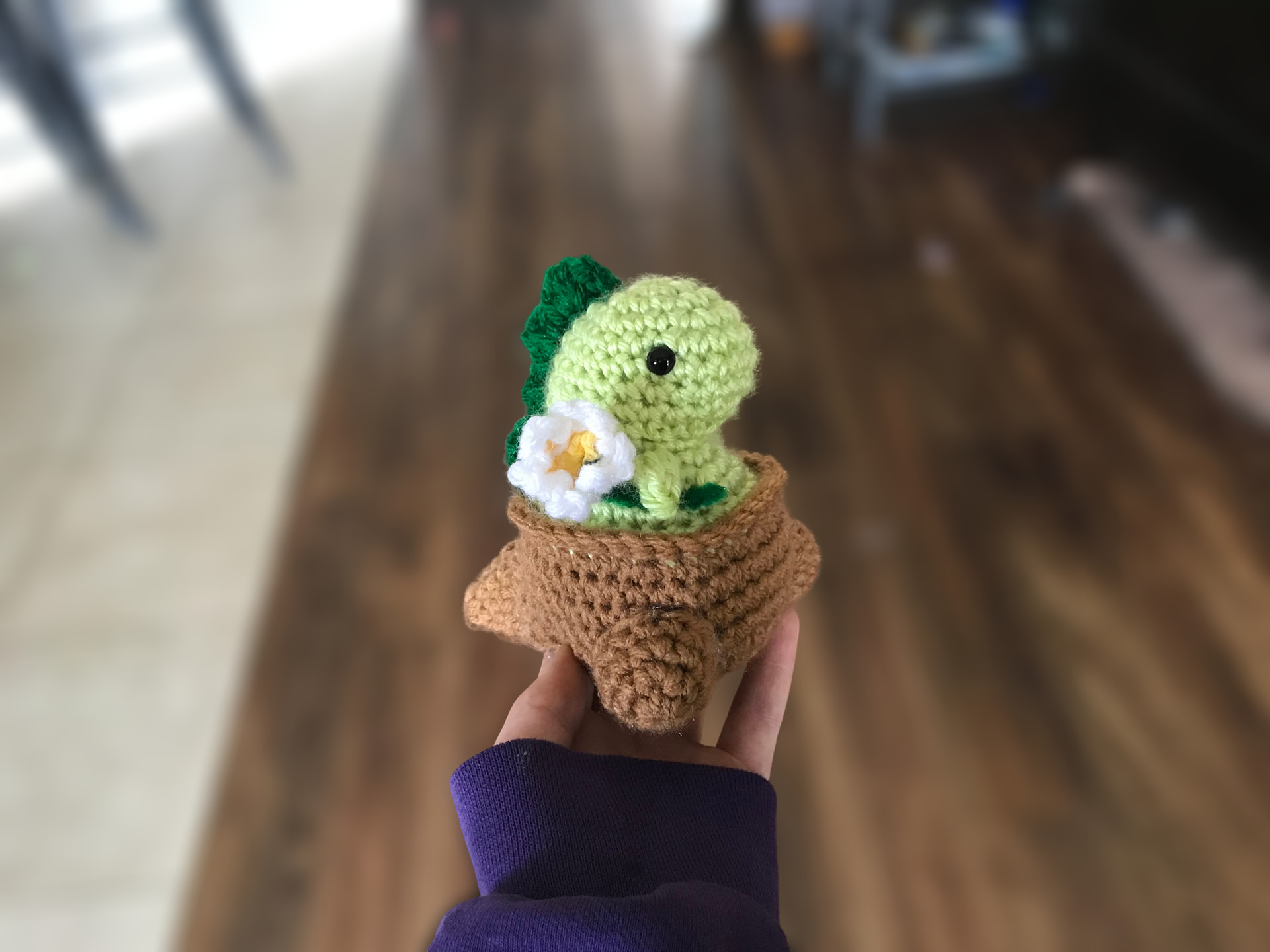 The dino in the pot is sooo cuteee do you knwot he pattern?