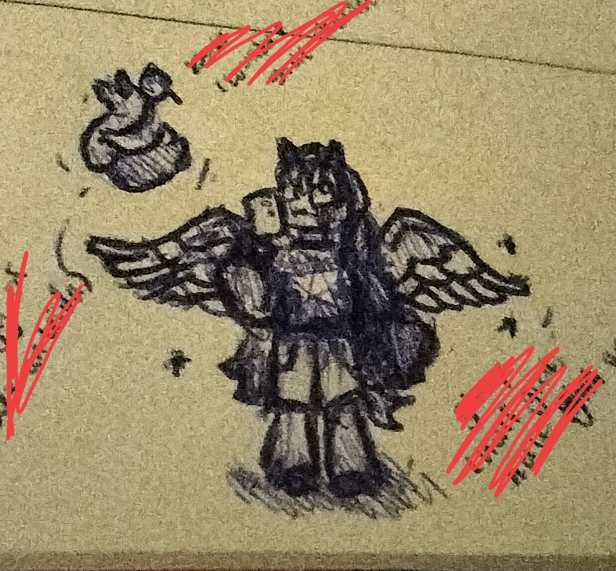 (maybe if it isn’t too hard hehehe) This is a really bad drawing and bad photo but maybe my OC Ginny? She is half goat, half angel