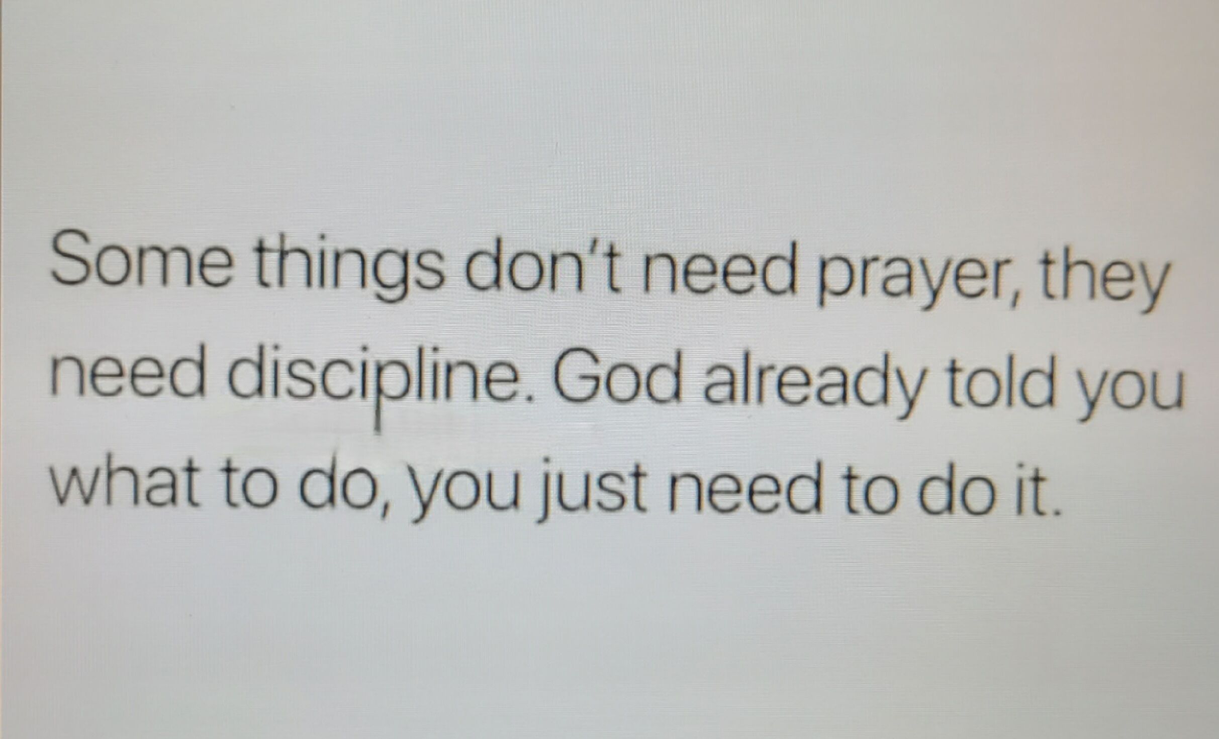 That’s a sermon right there. Continue to pray, but get up and go do what you were told do already. What you were told isn’t going to change so get up and go do it. Tryin’ to pray for something different isn’t going to help. Actin’ like little children hoping someone else will do it so we can do what we want. Ha!