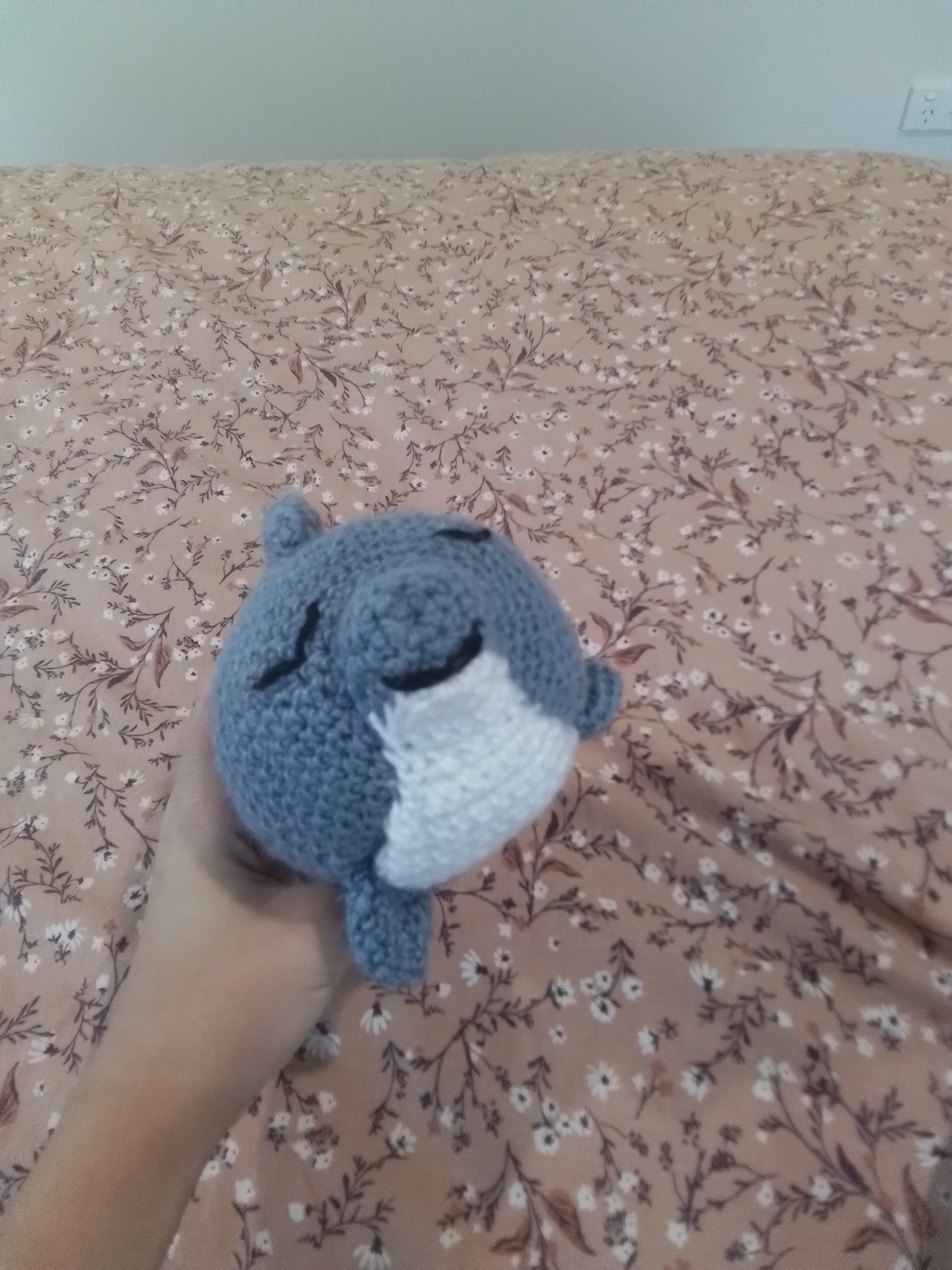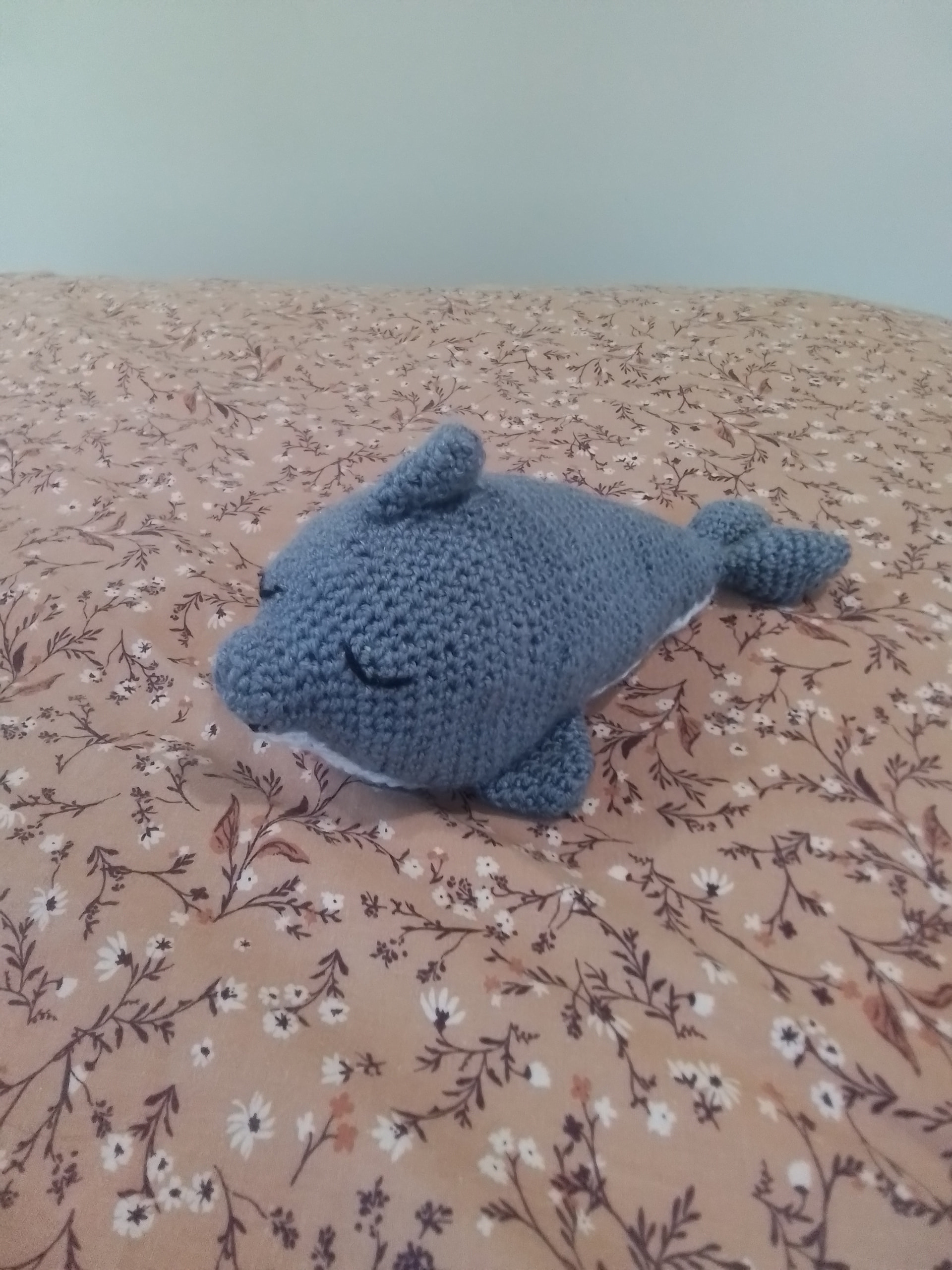 I have crocheted my teacher a dolphin for her end of year gift, I started and finished it yesterday, and its the most crochet Ive done in one day. Her favorite animal is a dolphin, so thats what I made, it kinda ended up looking more like a whale though. All credit for the pattern goes to Laura’s crafted collectables. I think my teacher will love it! It turned out sooo cute!