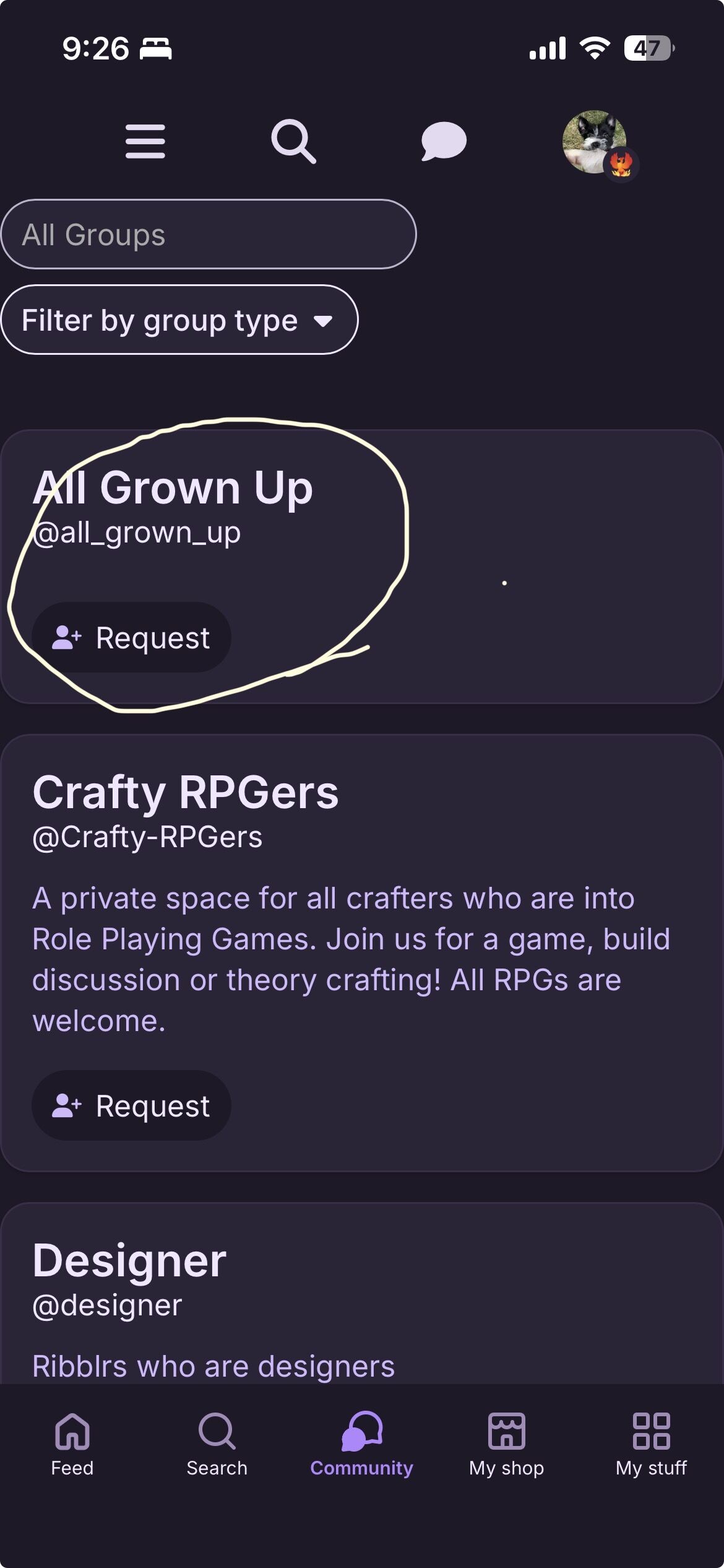 There is! If u look at the top of the screen(mobile) you will see a chat emogi like this (without the dots) then click the search button then click “general chat “ it will be a public so anyone will be there if ur ok with that and I’m sure there is a group called all grown up (adults only I think)ii would tell how to get there but my phone is being laggy sorry: