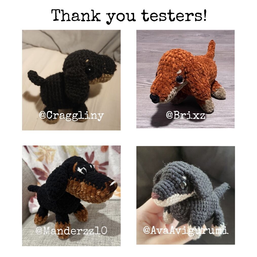 Here’s a link to the pattern: https://ribblr.com/pattern/dollie-the-dachshund-Crochet?referrer=408801