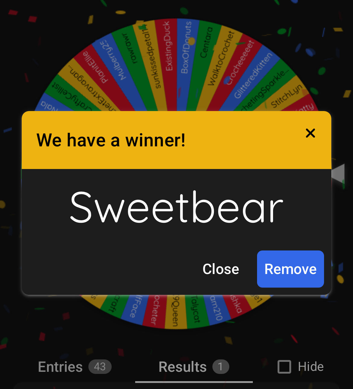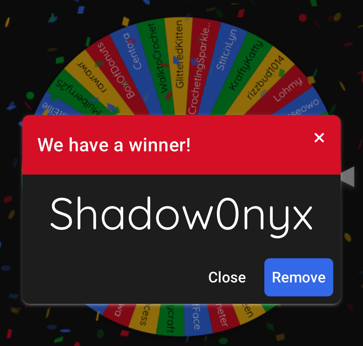 - Please contact me within 48 hours or let me know if you don’t want the prize you received and I will reroll for another winner!