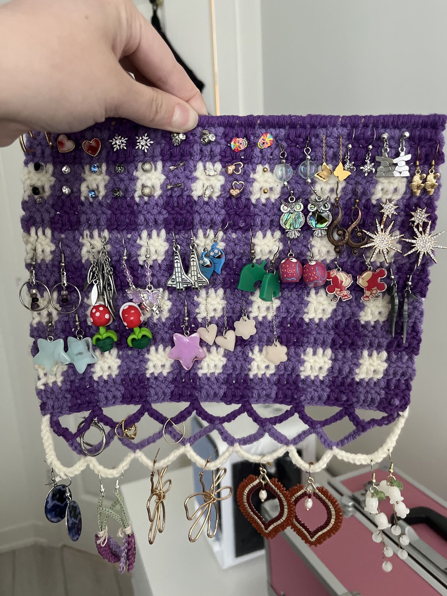 Would anyone be interested in a free pattern for this earring organizer? It’s meant to be mounted on the wall, I just haven’t bought hooks yet. It’s quite simple but I feel like it works well! I don’t mind posting the pattern, just wanted to see if there’s any interest :)