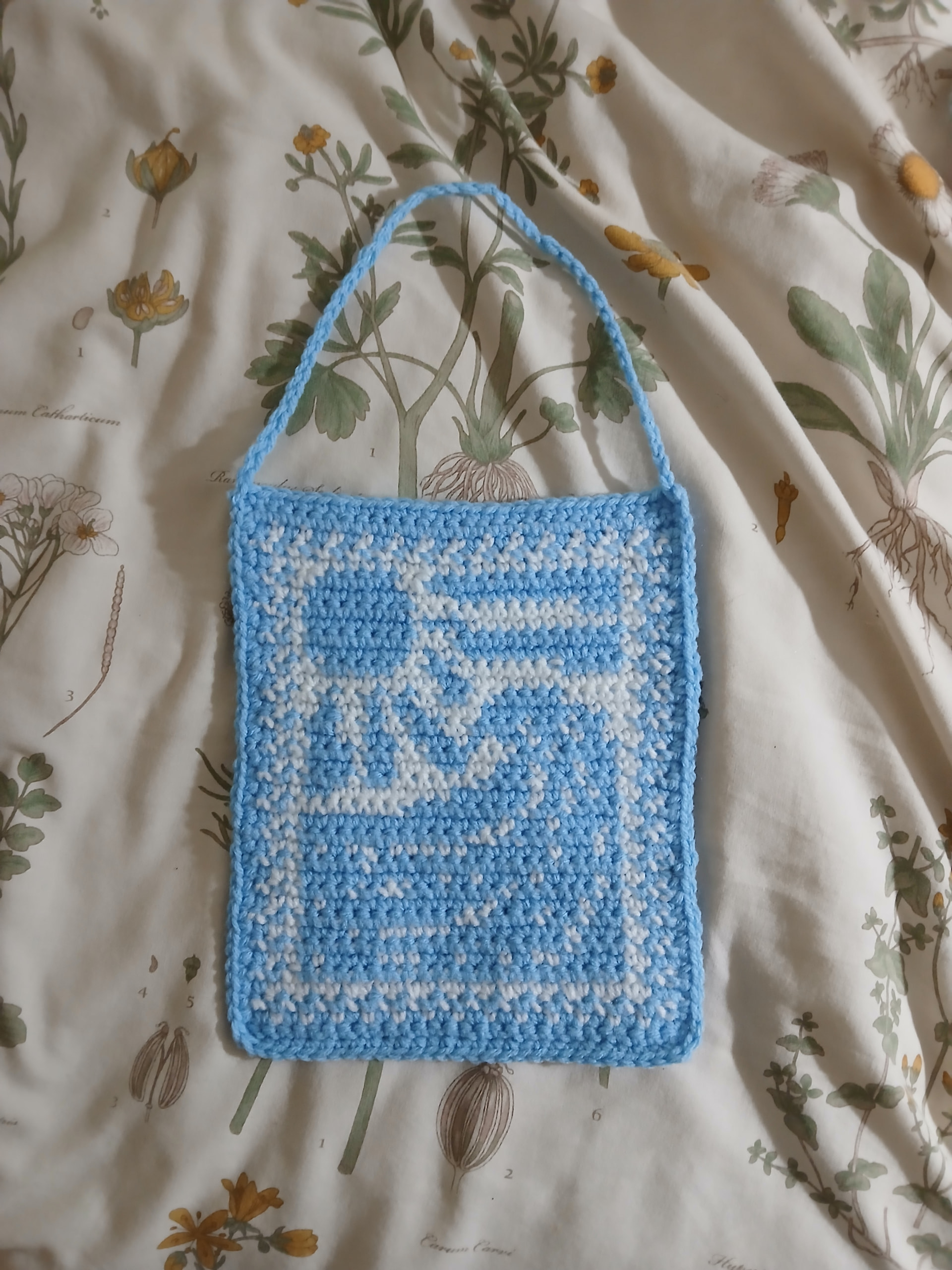 (Wave tapestry was freehanded, I used a yt tutorial by chorshan for the base of the pouch and freehanded the rest)