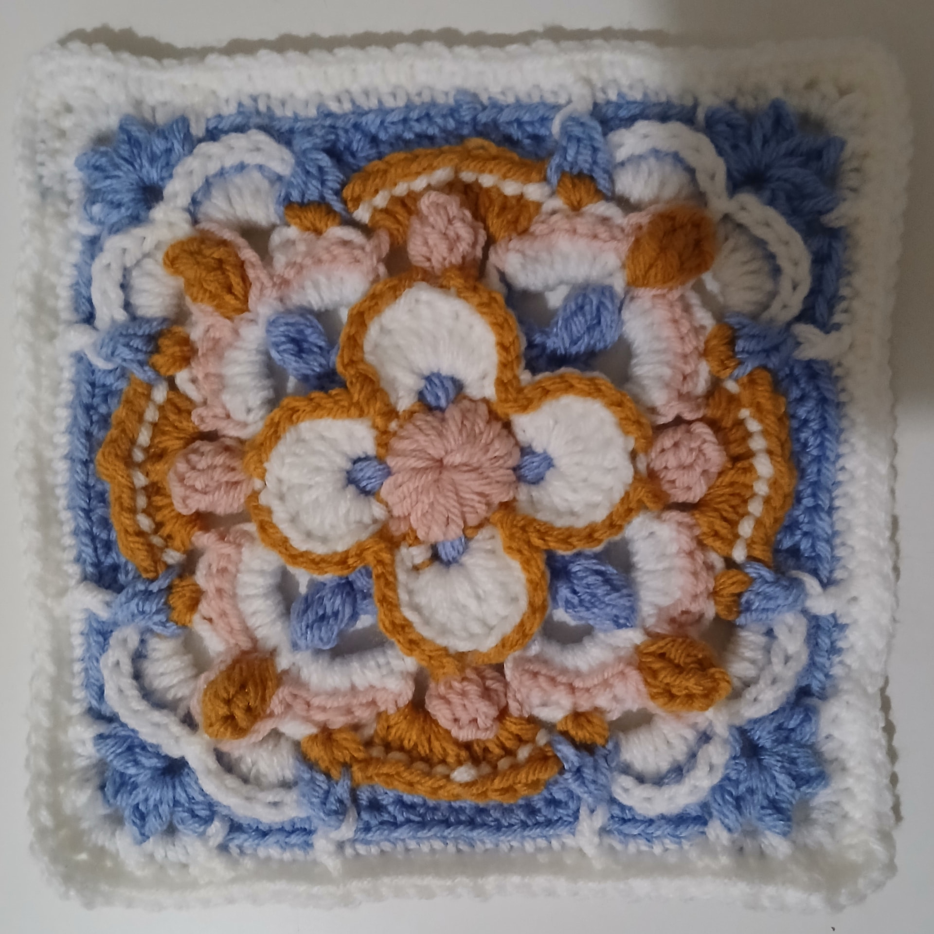 20th- jasmine stitch swatch, pumpkin pie coaster