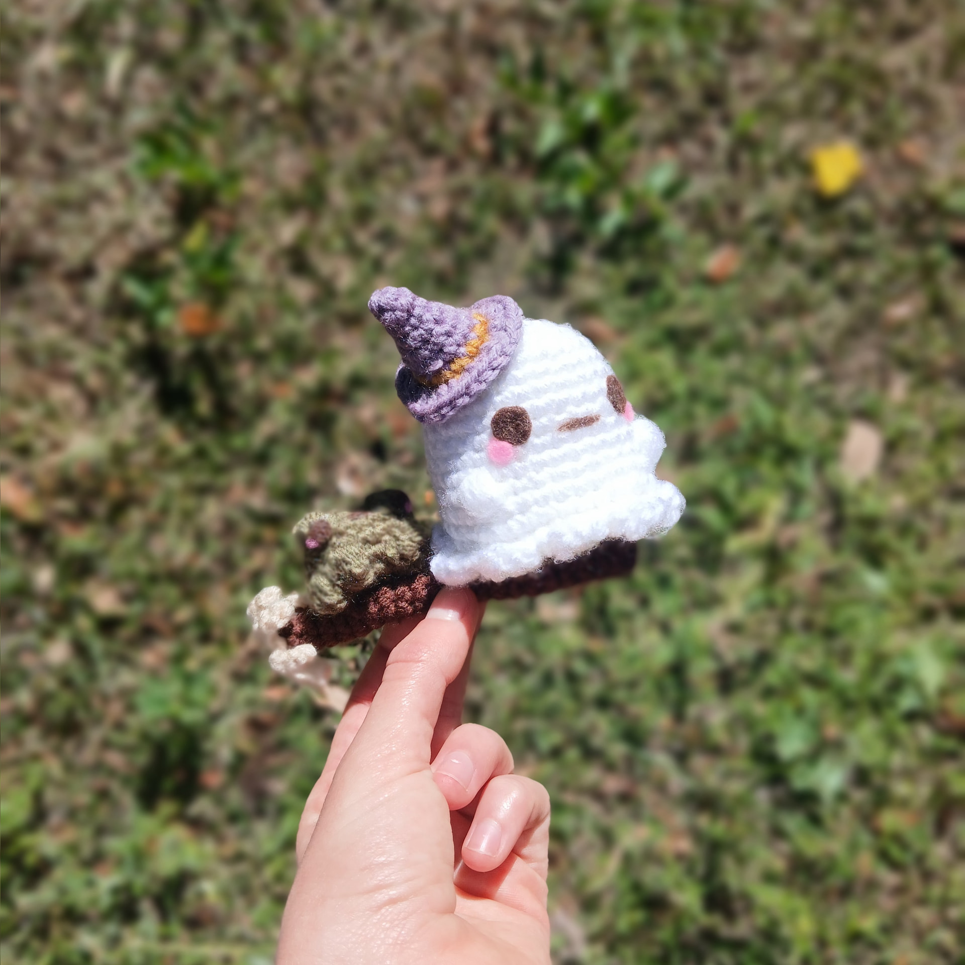 22nd- potted sprout, witch ghost, bullion stitch swatch